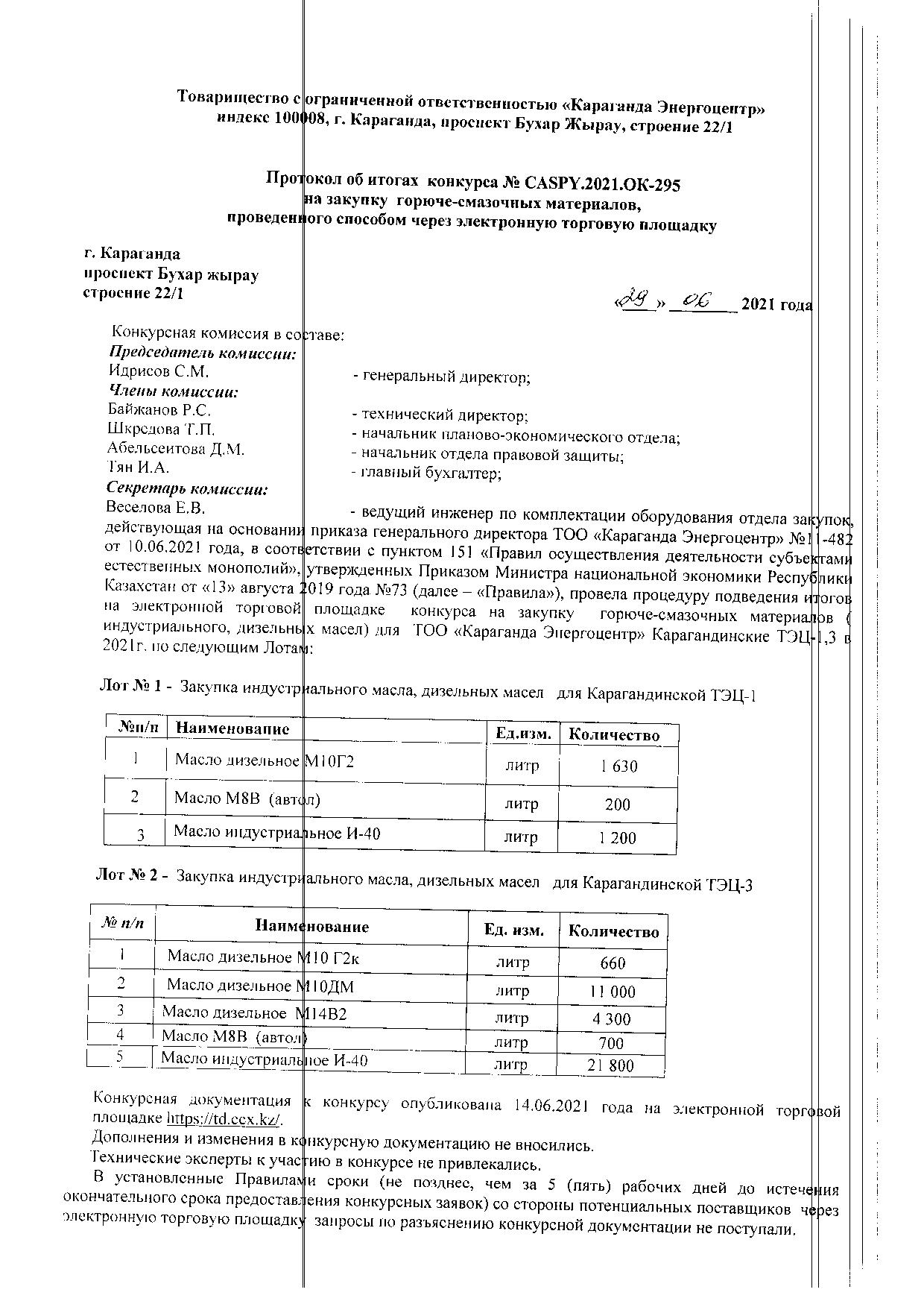 ОБЪЯВЛЕНИЕ № CASPY.2021.ОК-295