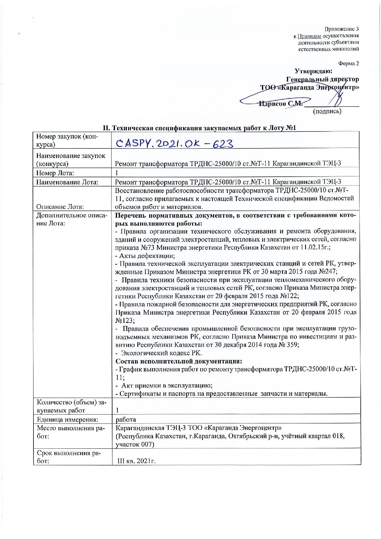 ОБЪЯВЛЕНИЕ № CASPY.2021.ОК-623