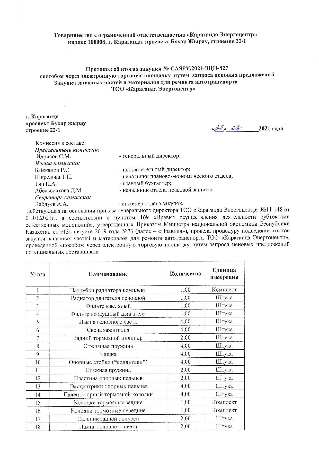 » ОБЪЯВЛЕНИЕ № CASPY.2021.ЗЦП-827