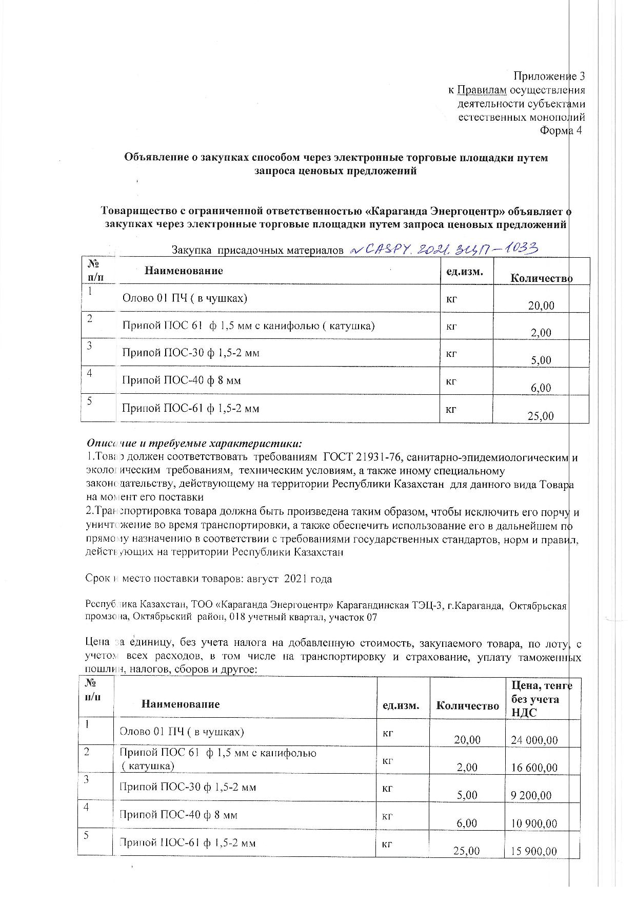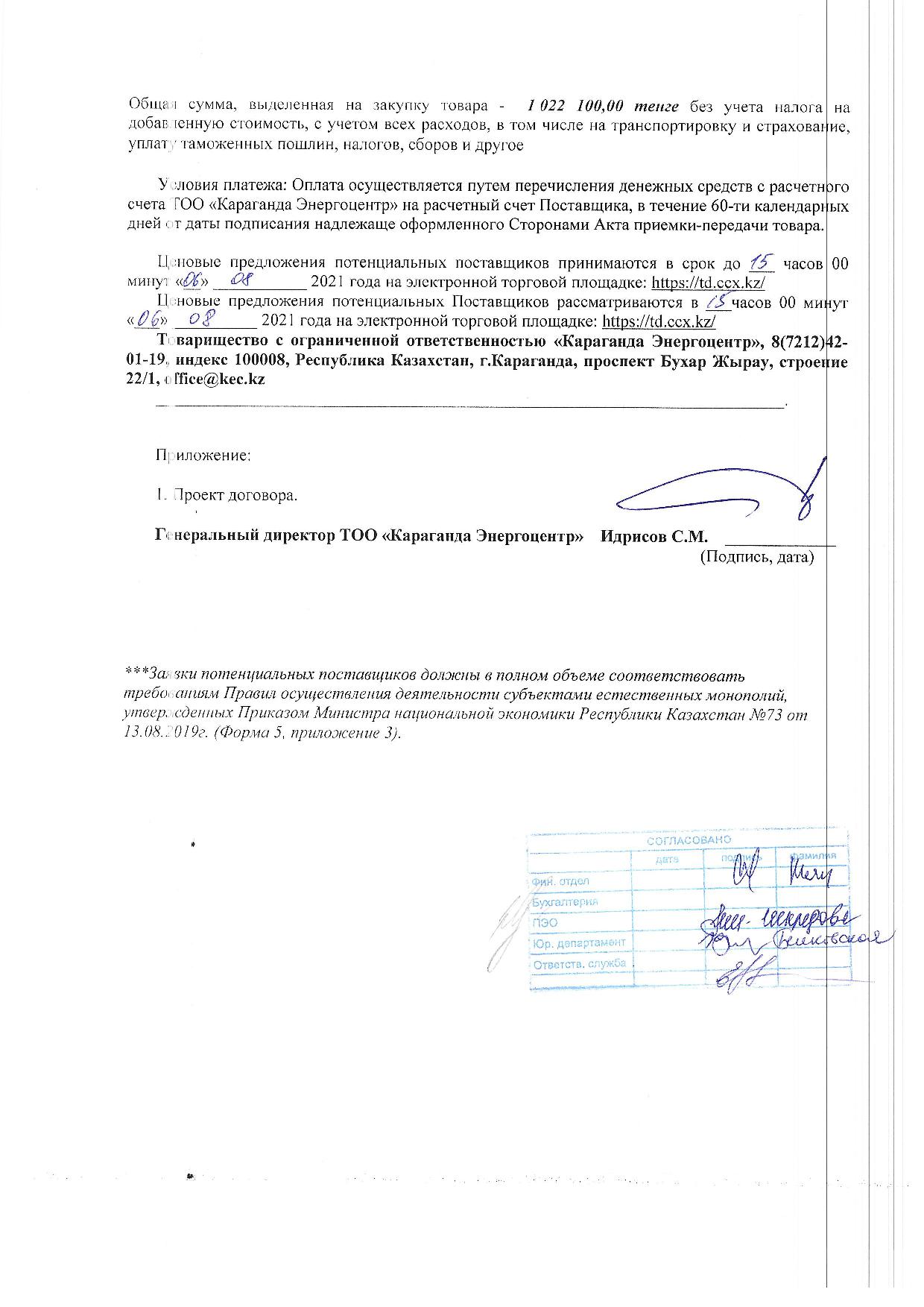 ОБЪЯВЛЕНИЕ № CASPY.2021.ЗЦП-1033
