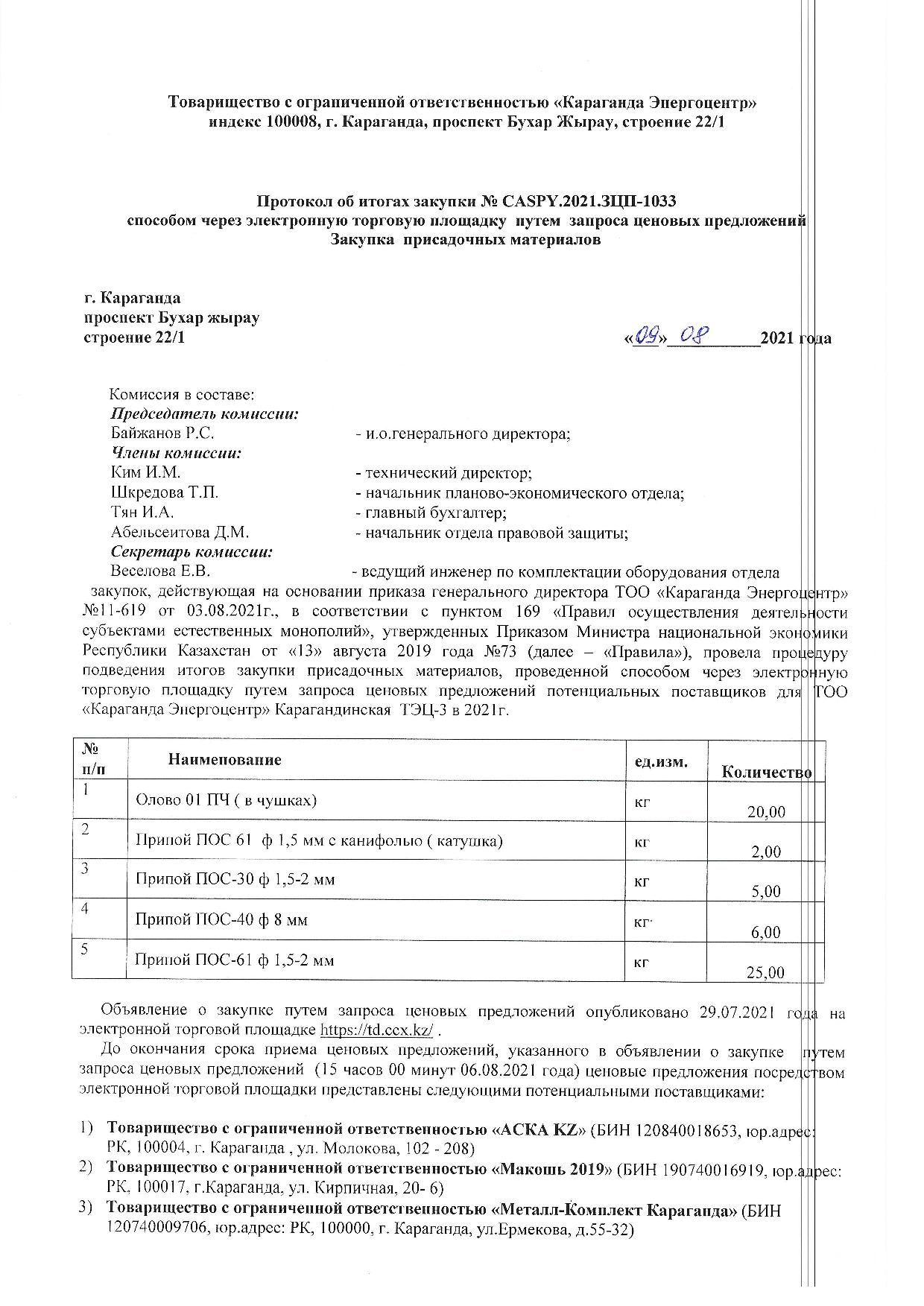 » ОБЪЯВЛЕНИЕ № CASPY.2021.ЗЦП-1033