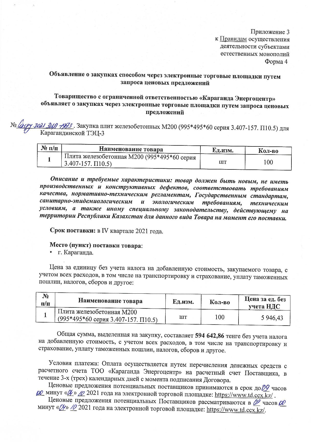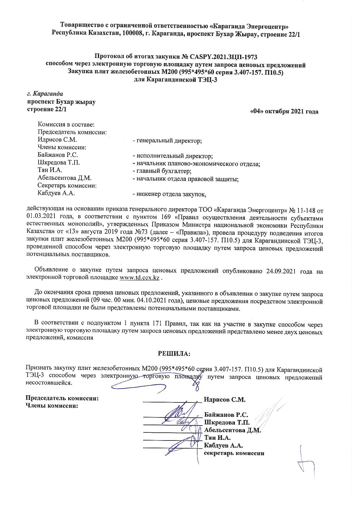 ОБЪЯВЛЕНИЕ № CASPY.2021.ЗЦП-1973