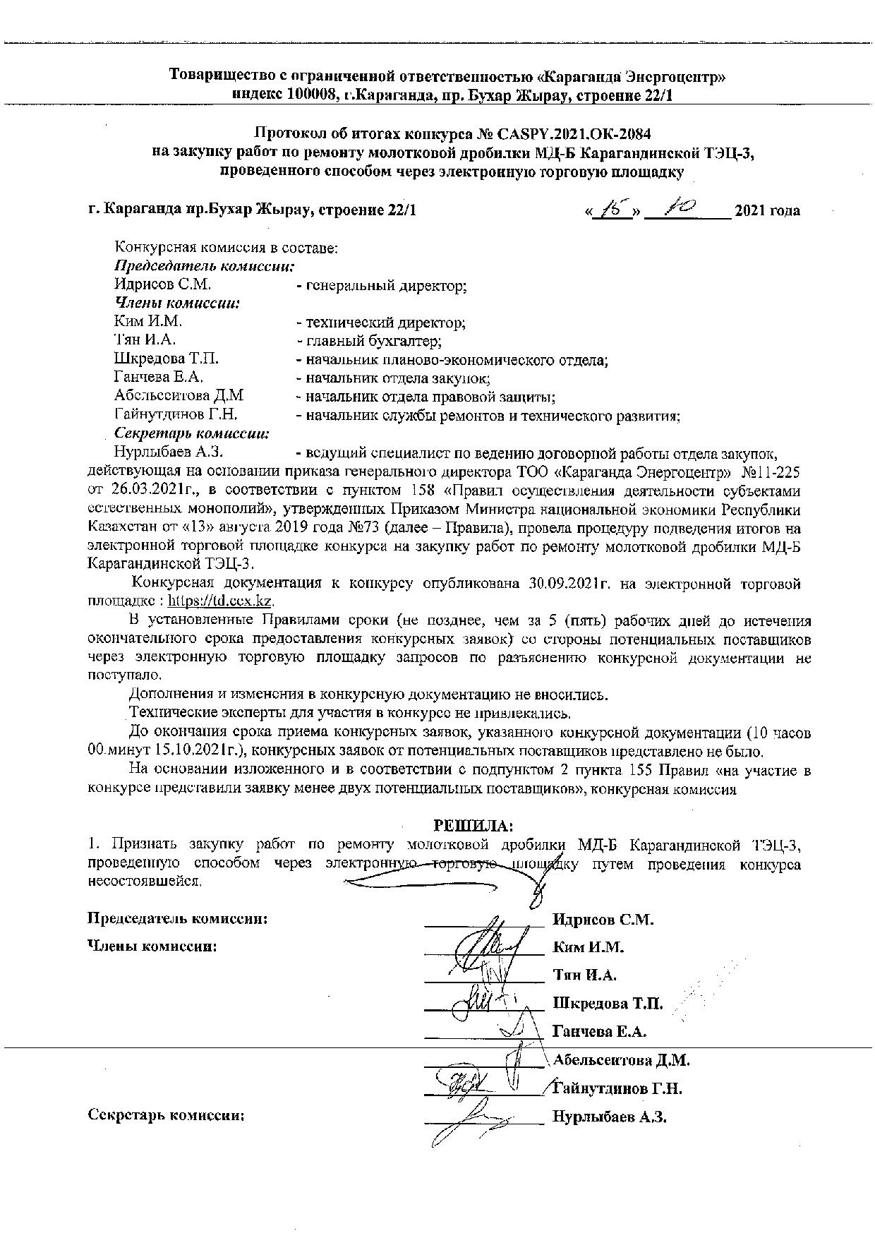 ОБЪЯВЛЕНИЕ № CASPY.2021.ОК-2084