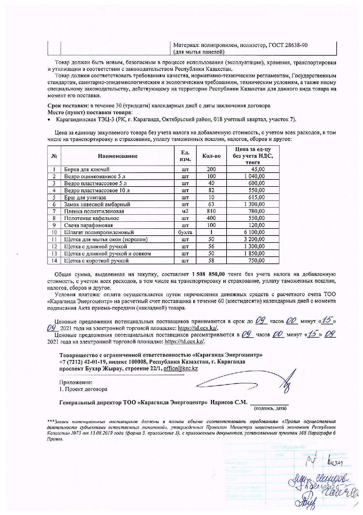 ОБЪЯВЛЕНИЕ № CASPY.2021.ЗЦП-1713