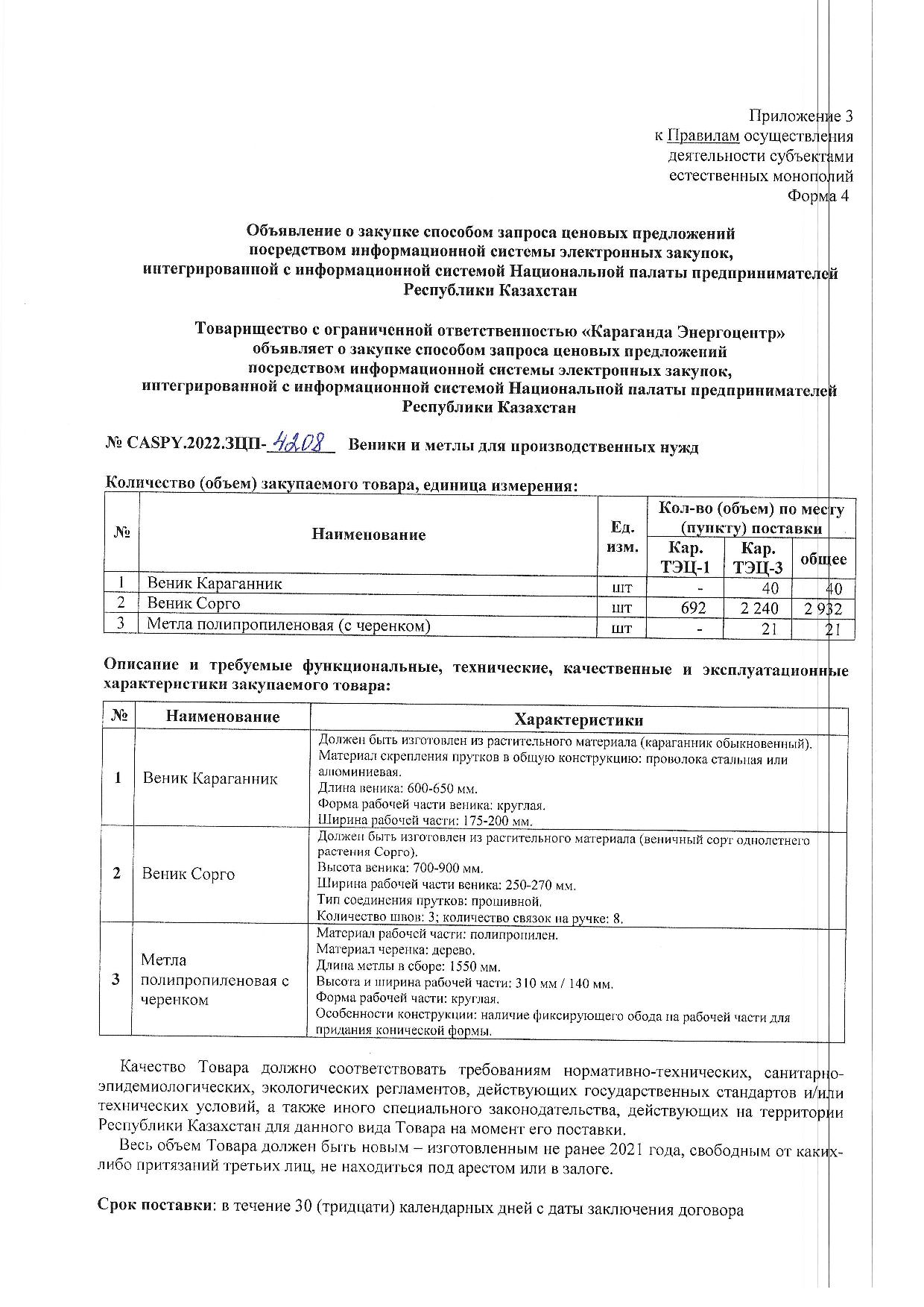 ОБЪЯВЛЕНИЕ № CASPY.2022.ЗЦП-4208