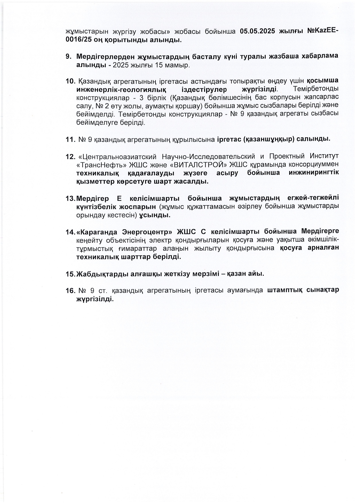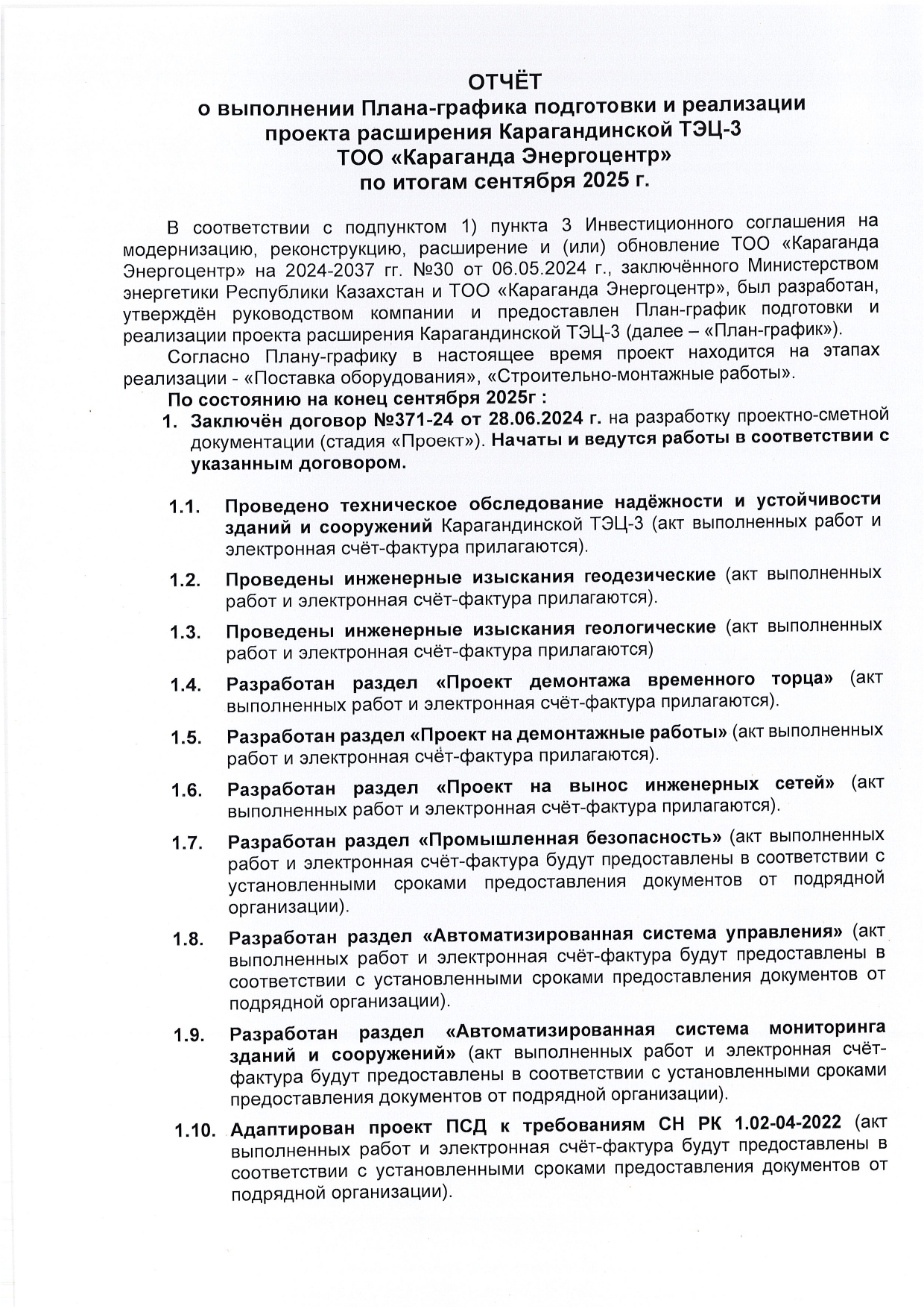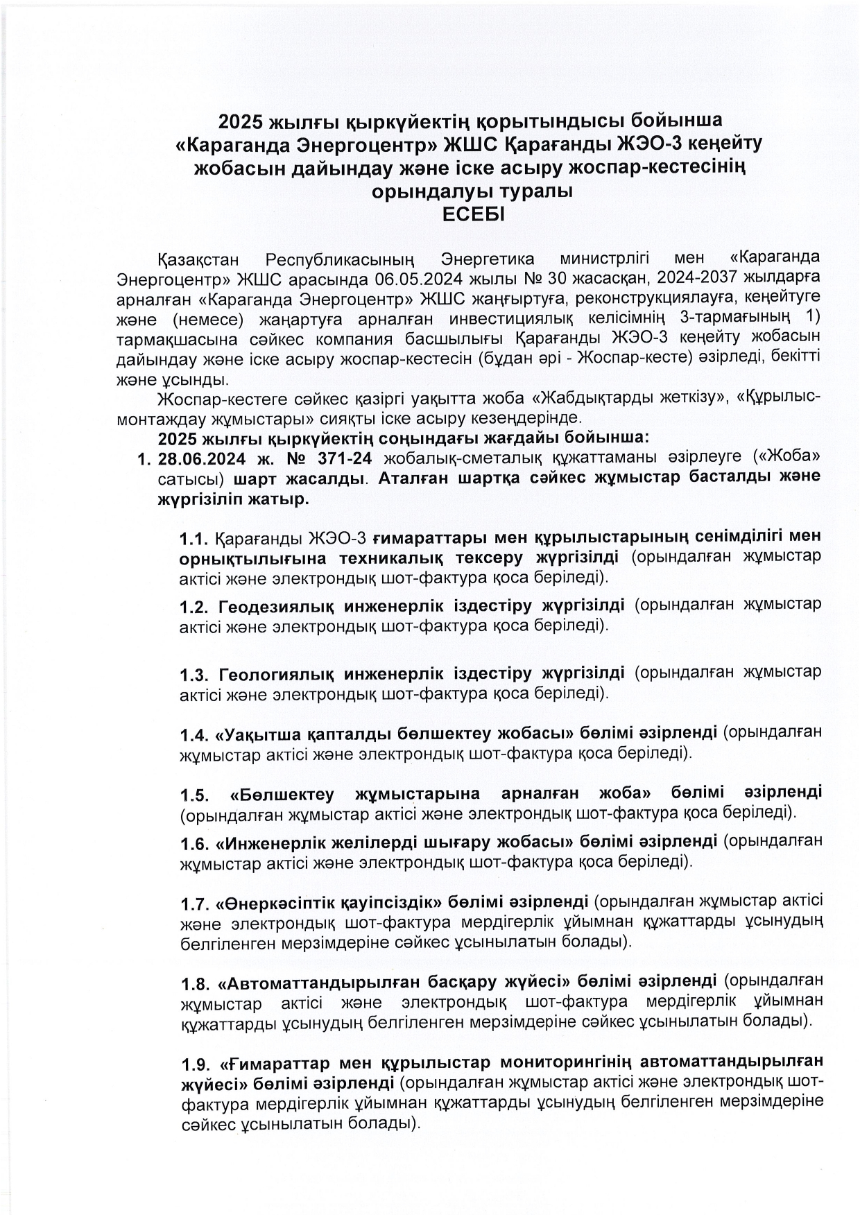 » КЕҢЕЙТУ ЖОБАСЫНЫҢ ЖОСПАР-КЕСТЕСІН ОРЫНДАУ ТУРАЛЫ ЕСЕБІ
