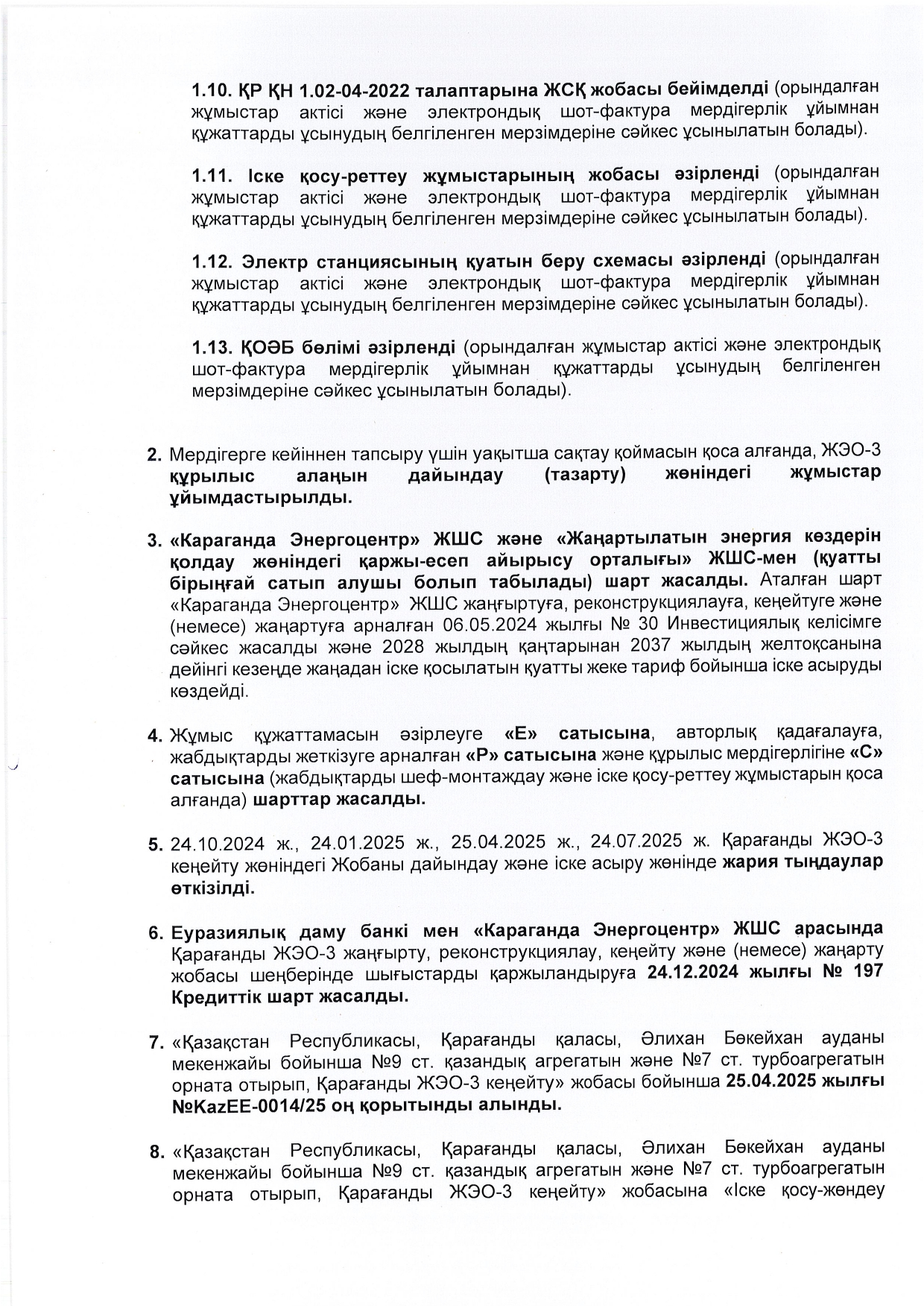 КЕҢЕЙТУ ЖОБАСЫНЫҢ ЖОСПАР-КЕСТЕСІН ОРЫНДАУ ТУРАЛЫ ЕСЕБІ