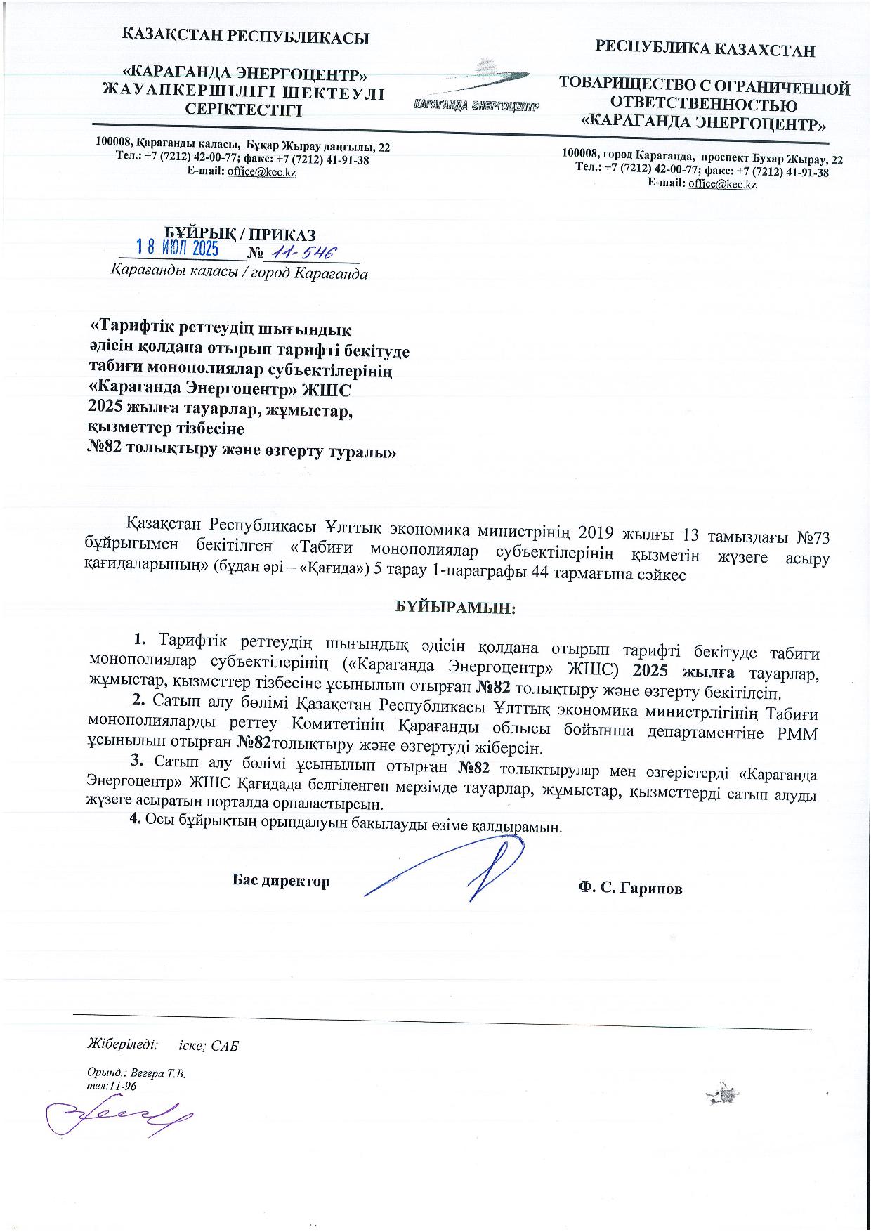 » ТОЛЫҚТЫРУ ЖӘНЕ ӨЗГЕРТУ № 82