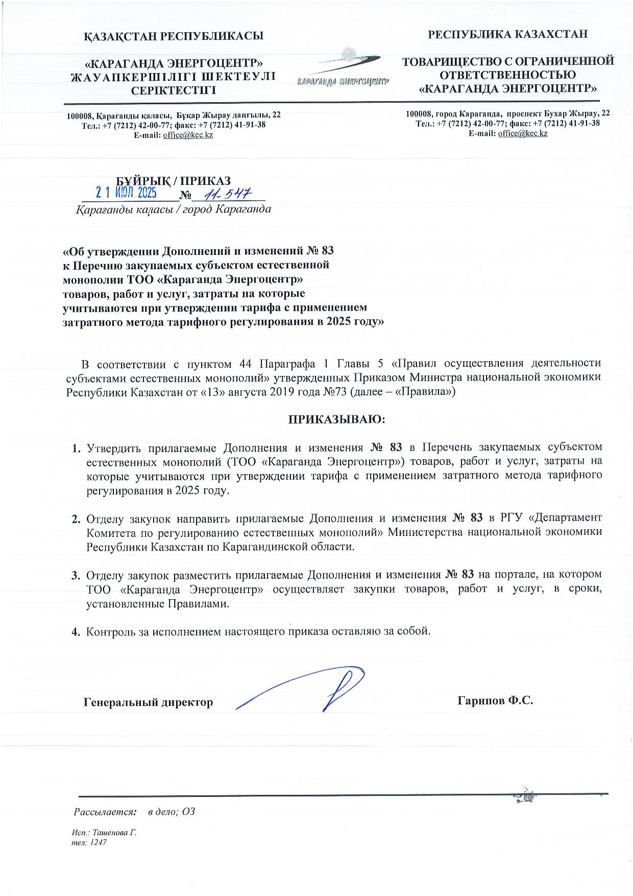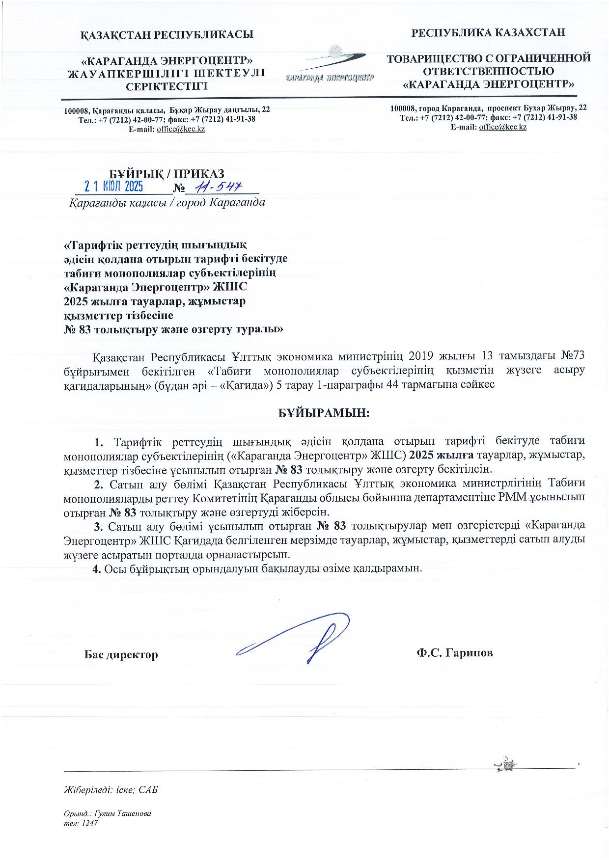 » ТОЛЫҚТЫРУ ЖӘНЕ ӨЗГЕРТУ № 83