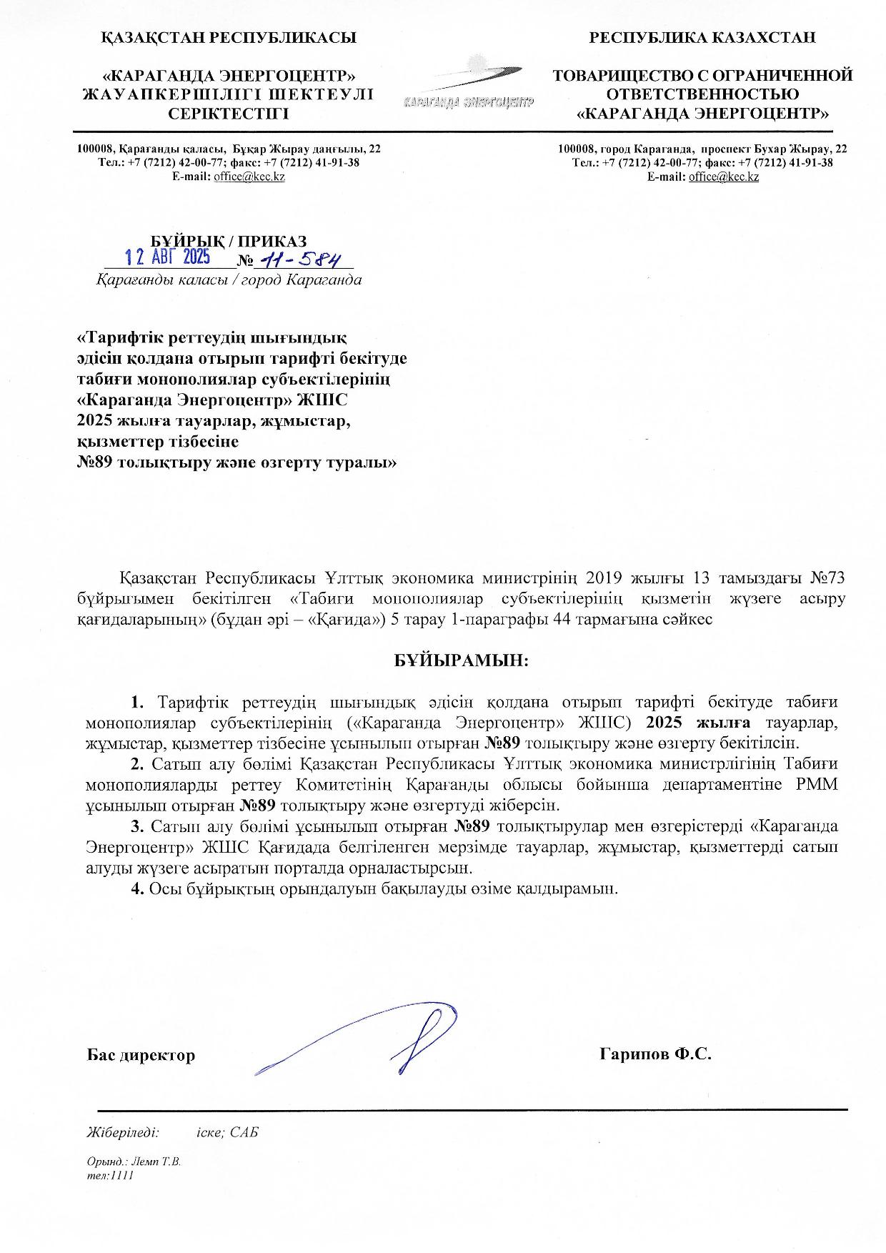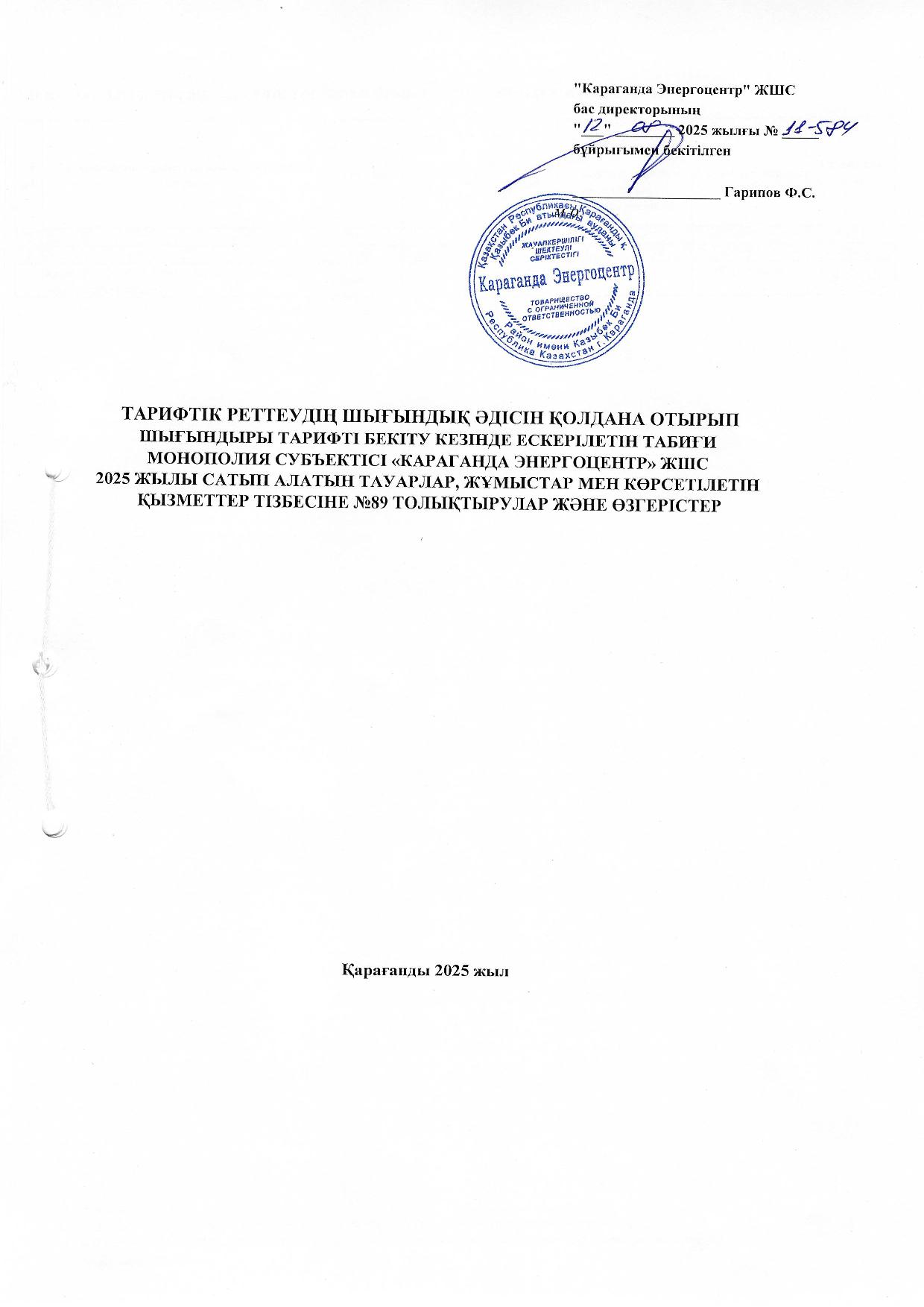 » ТОЛЫҚТЫРУ ЖӘНЕ ӨЗГЕРТУ № 89