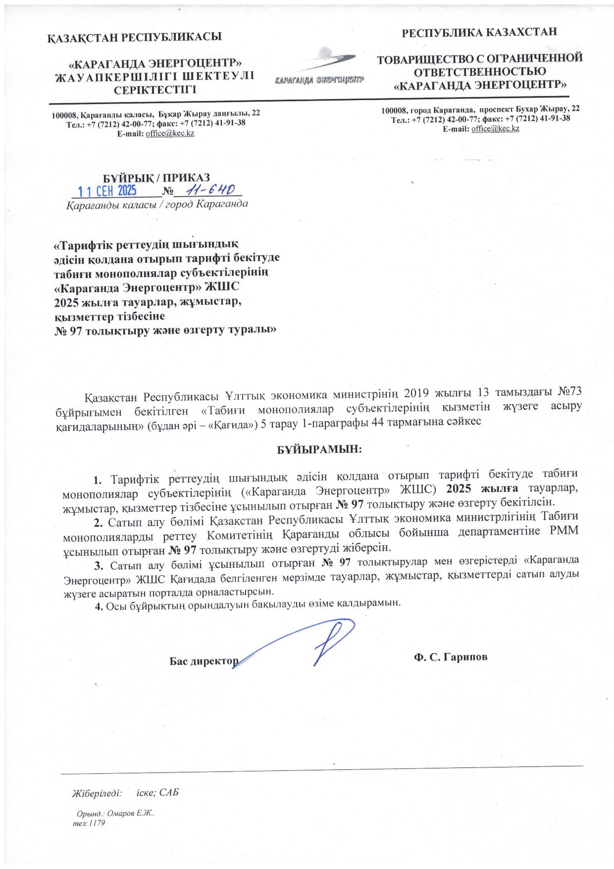 » ТОЛЫҚТЫРУ ЖӘНЕ ӨЗГЕРТУ № 97