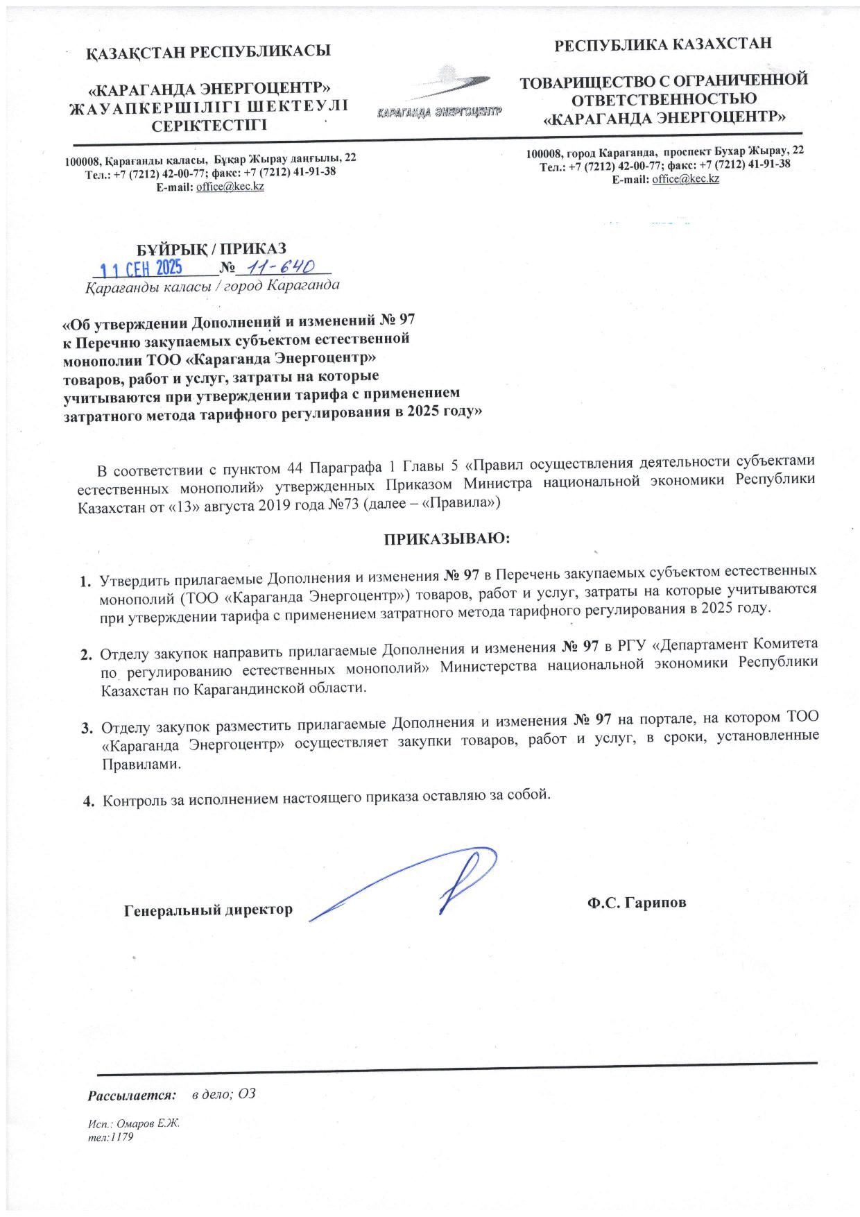 ТОЛЫҚТЫРУ ЖӘНЕ ӨЗГЕРТУ № 97