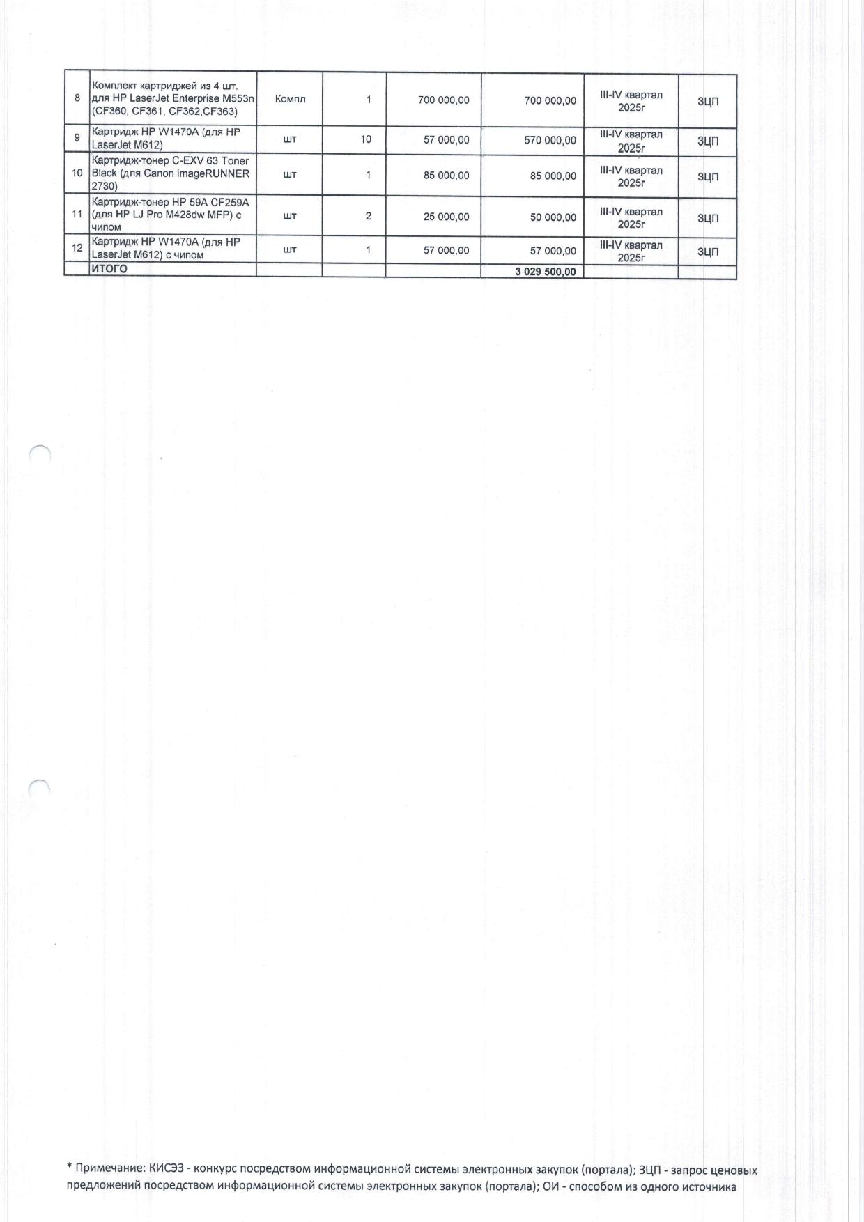 Перечень 2025 г. закупаемых товаров, услуг, работ