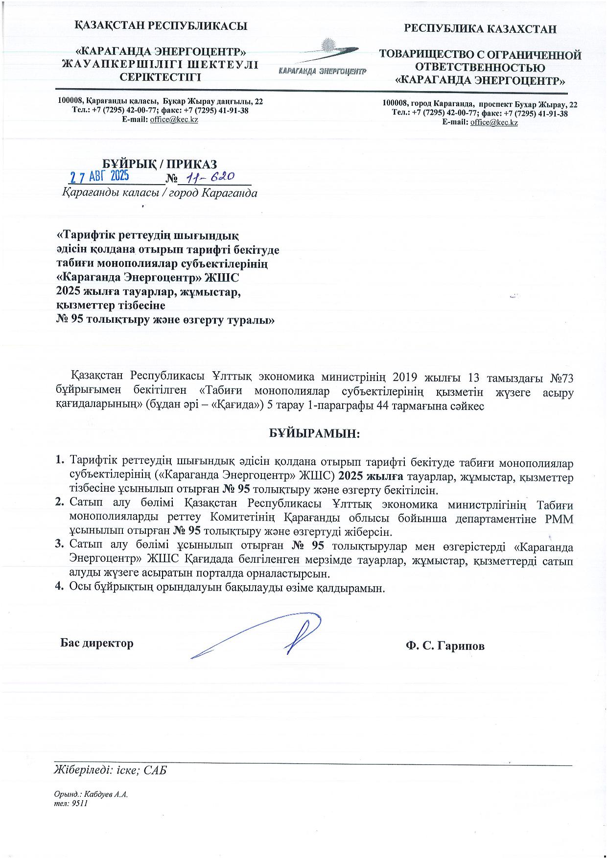 » ТОЛЫҚТЫРУ ЖӘНЕ ӨЗГЕРТУ № 95