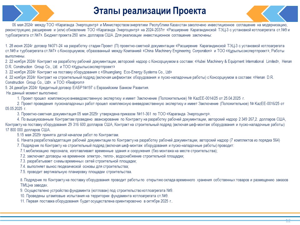 БЕКІТІЛГЕН ИНВЕСТИЦИЯЛЫҚ БАҒДАРЛАМАНЫҢ ОРЫНДАЛУЫ ЖӨНІНДЕГІ АҚПАРАТ
