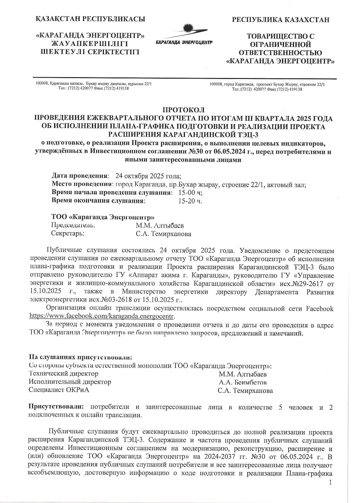» БЕКІТІЛГЕН ИНВЕСТИЦИЯЛЫҚ БАҒДАРЛАМАНЫҢ ОРЫНДАЛУЫ ЖӨНІНДЕГІ АҚПАРАТ