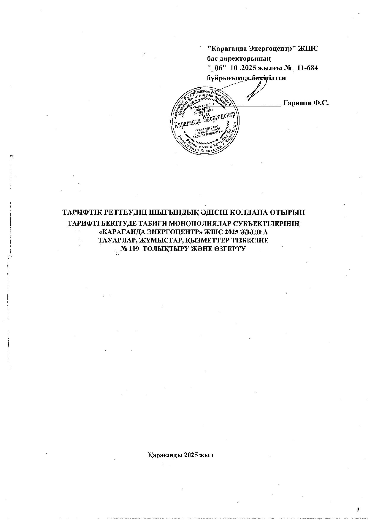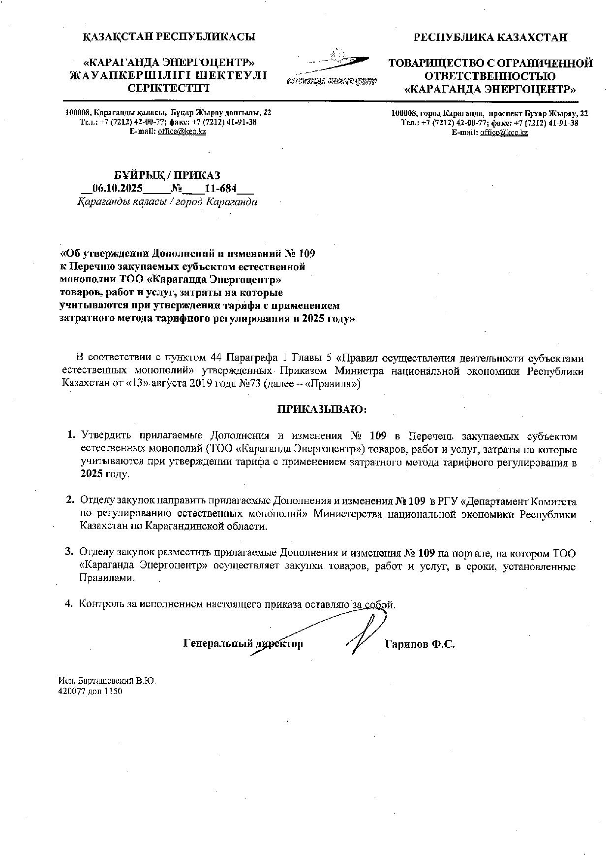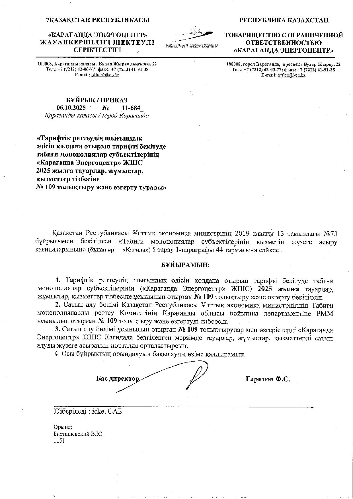 » ТОЛЫҚТЫРУ ЖӘНЕ ӨЗГЕРТУ № 109