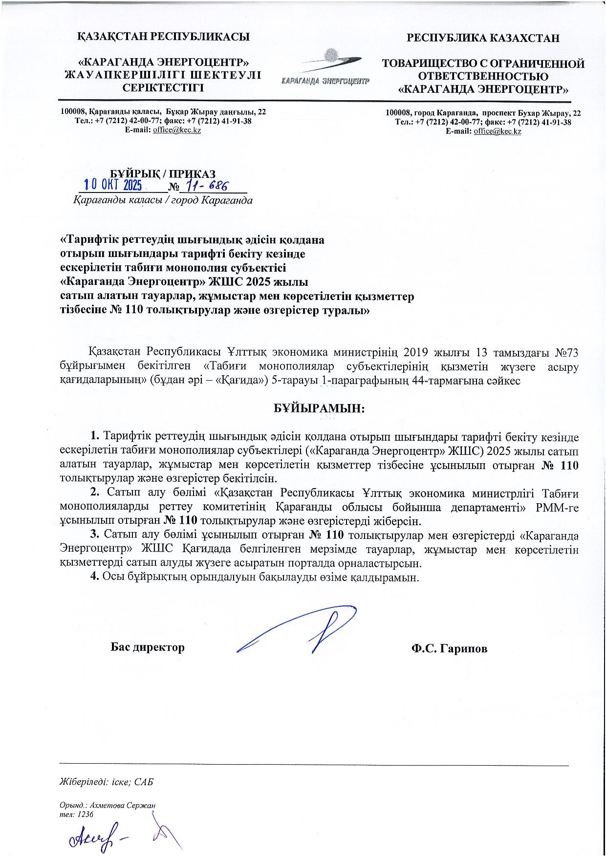 » ТОЛЫҚТЫРУ ЖӘНЕ ӨЗГЕРТУ № 110