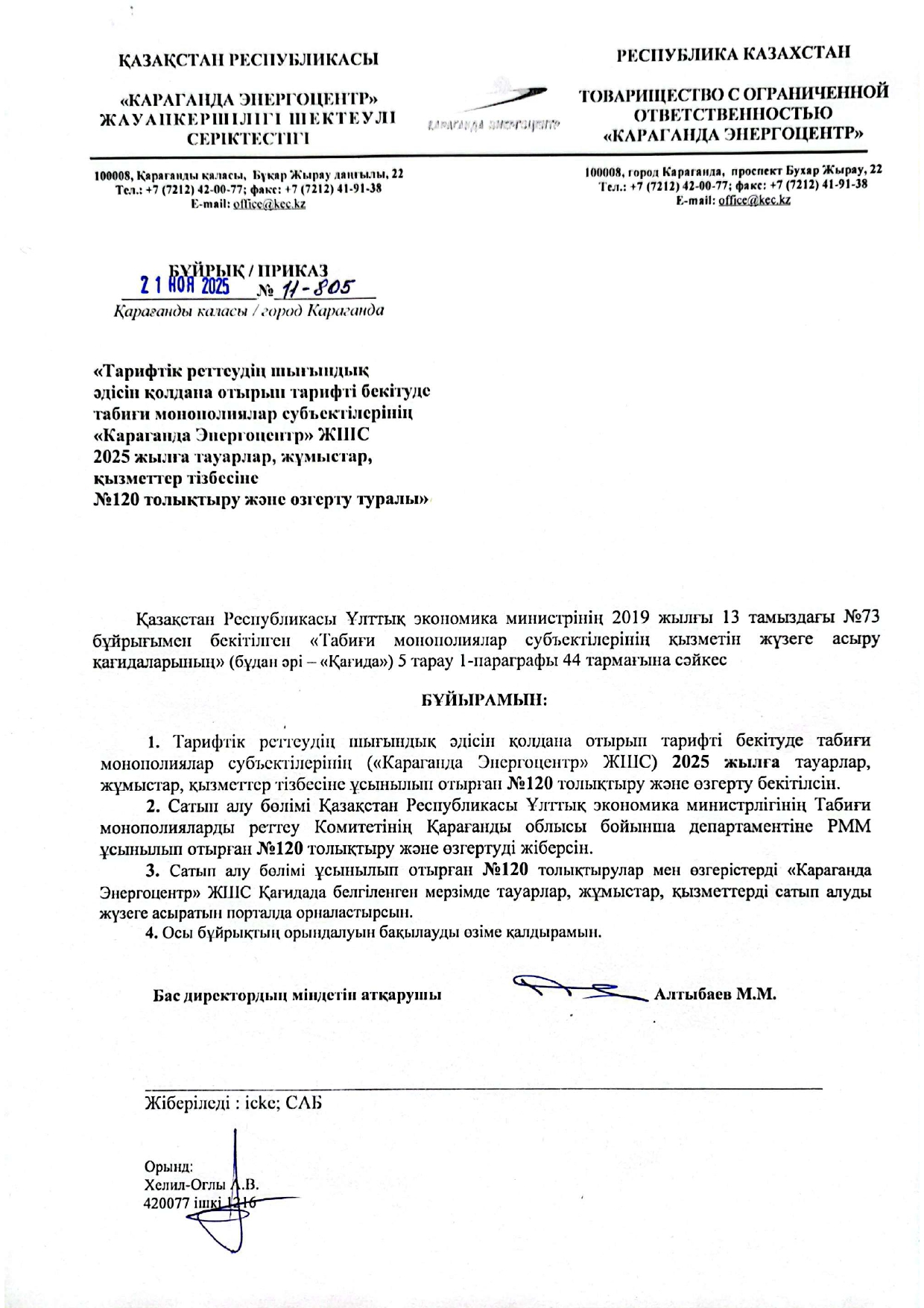 » ТОЛЫҚТЫРУ ЖӘНЕ ӨЗГЕРТУ № 120