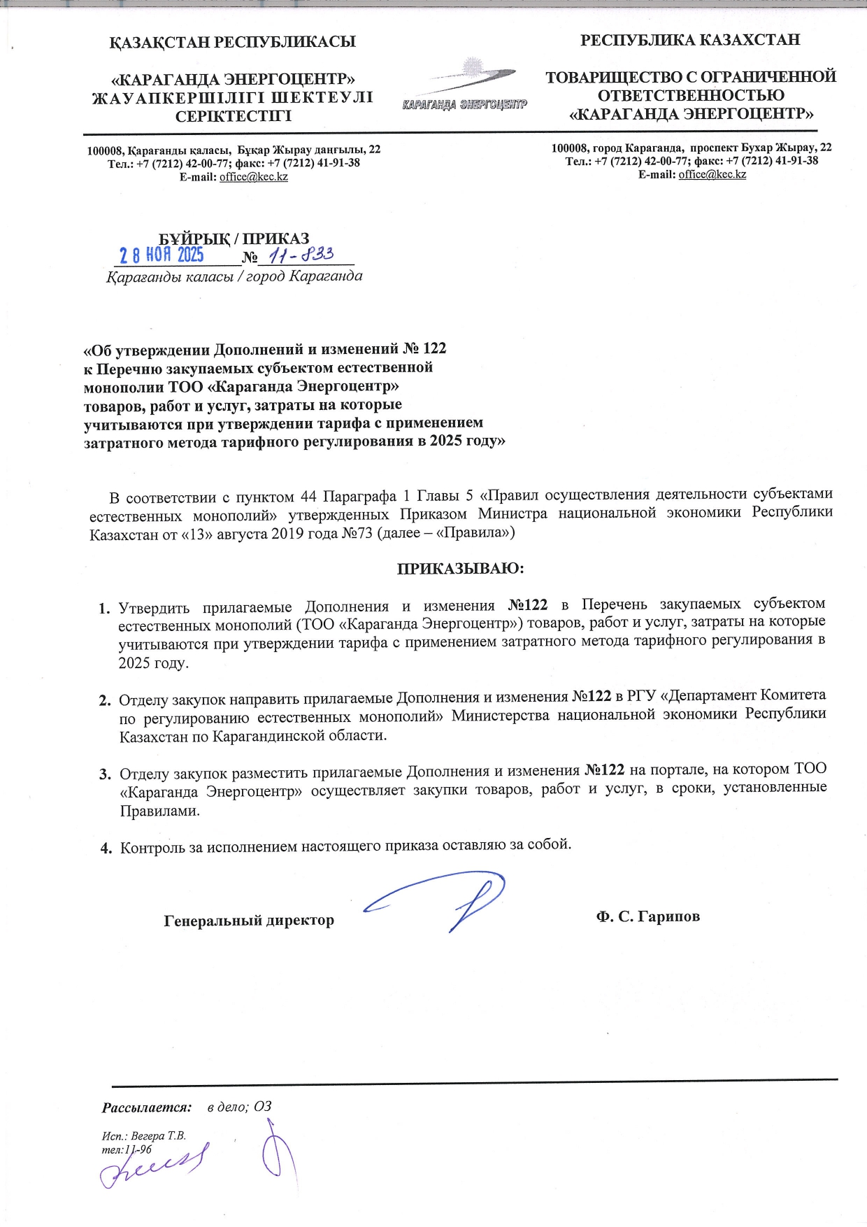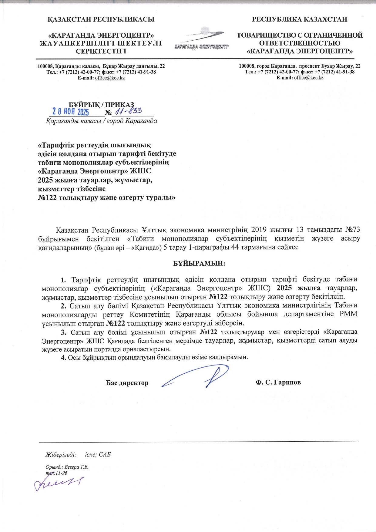» ТОЛЫҚТЫРУ ЖӘНЕ ӨЗГЕРТУ № 122