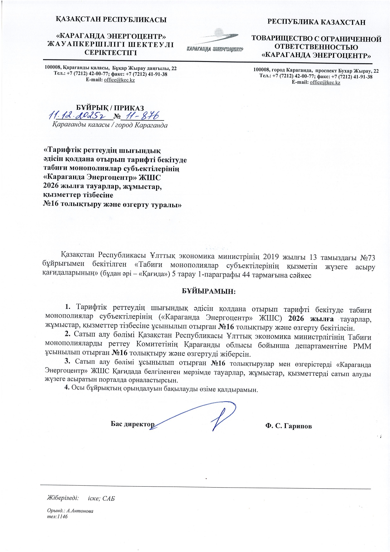 ТОЛЫҚТЫРУ ЖӘНЕ ӨЗГЕРТУ № 16