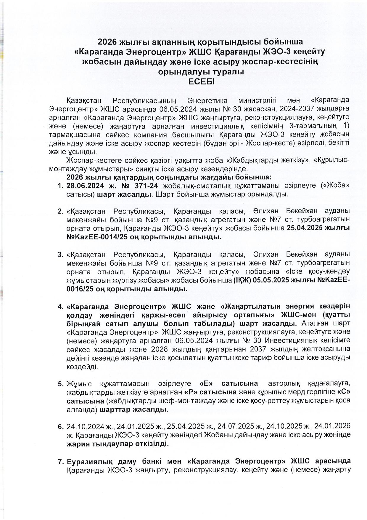 КЕҢЕЙТУ ЖОБАСЫНЫҢ ЖОСПАР-КЕСТЕСІН ОРЫНДАУ ТУРАЛЫ ЕСЕБІ