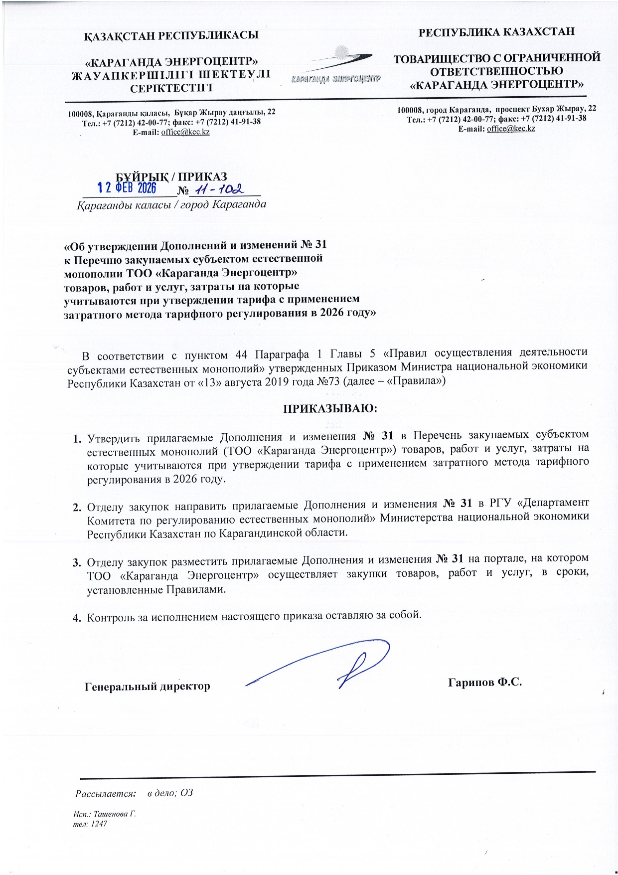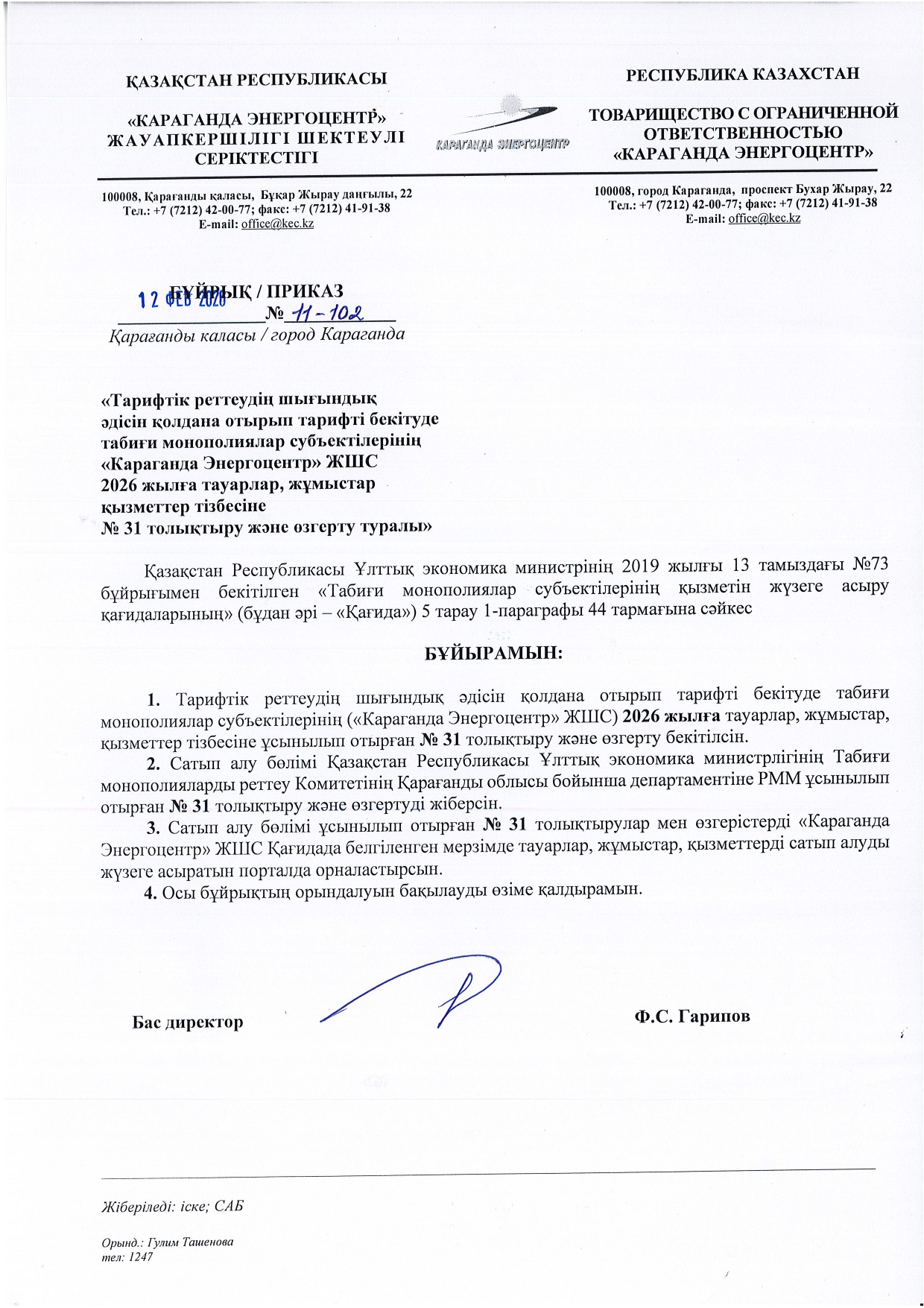 ТОЛЫҚТЫРУ ЖӘНЕ ӨЗГЕРТУ №31
