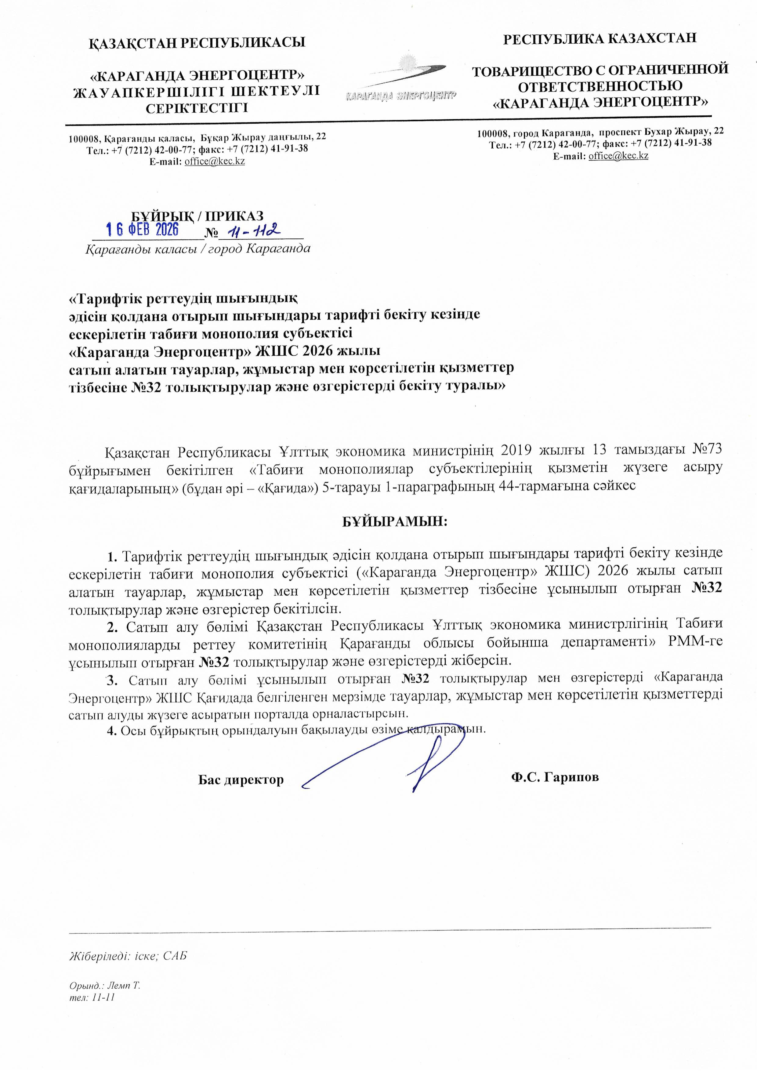 » ТОЛЫҚТЫРУ ЖӘНЕ ӨЗГЕРТУ №32