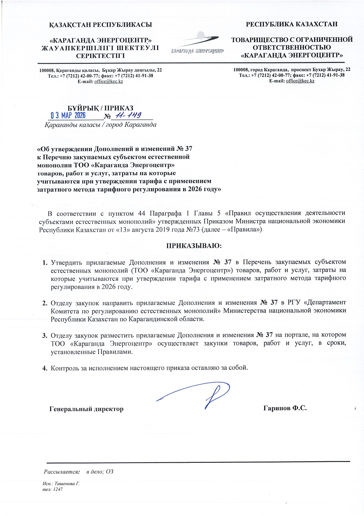 » ТОЛЫҚТЫРУ ЖӘНЕ ӨЗГЕРТУ №37