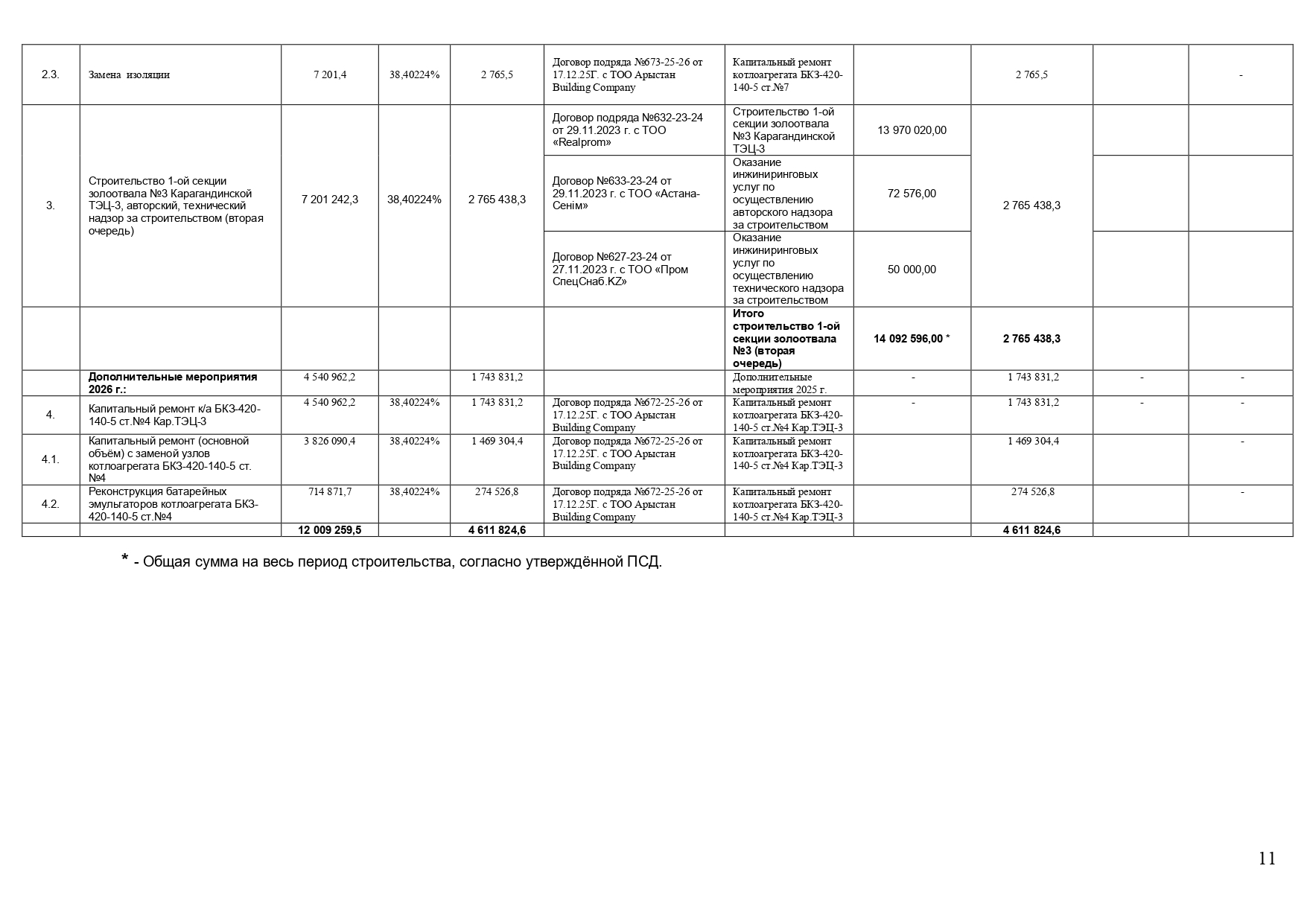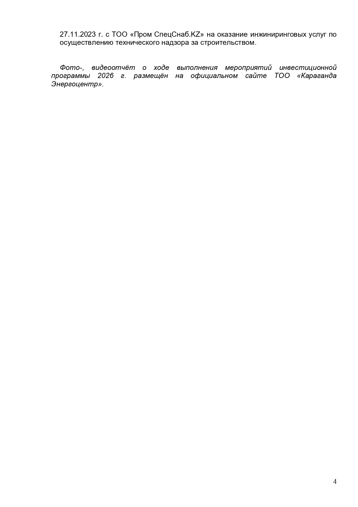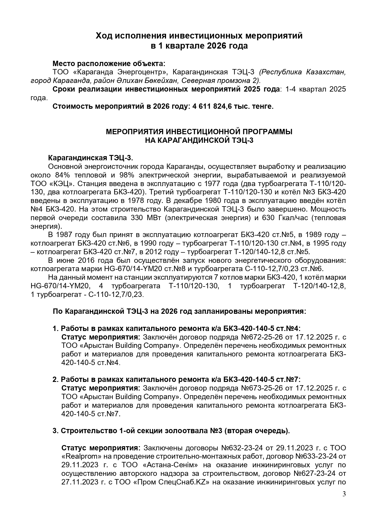 » БЕКІТІЛГЕН ИНВЕСТИЦИЯЛЫҚ БАҒДАРЛАМАНЫҢ ОРЫНДАЛУЫ ЖӨНІНДЕГІ АҚПАРАТ 2026 ЖЫЛҒЫ I ТОҚСАН