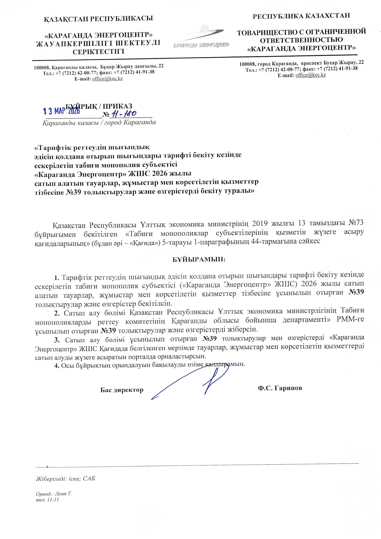 » ТОЛЫҚТЫРУ ЖӘНЕ ӨЗГЕРТУ №39