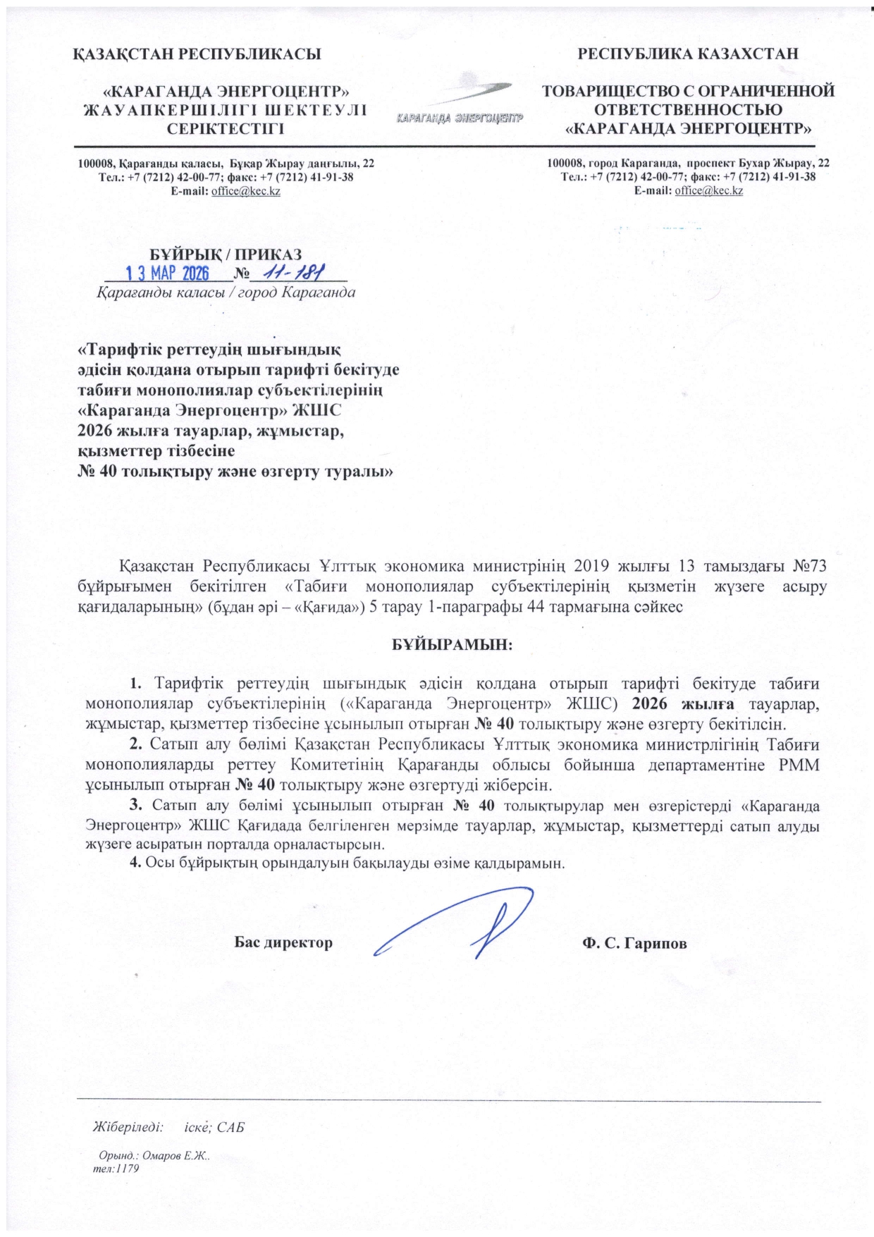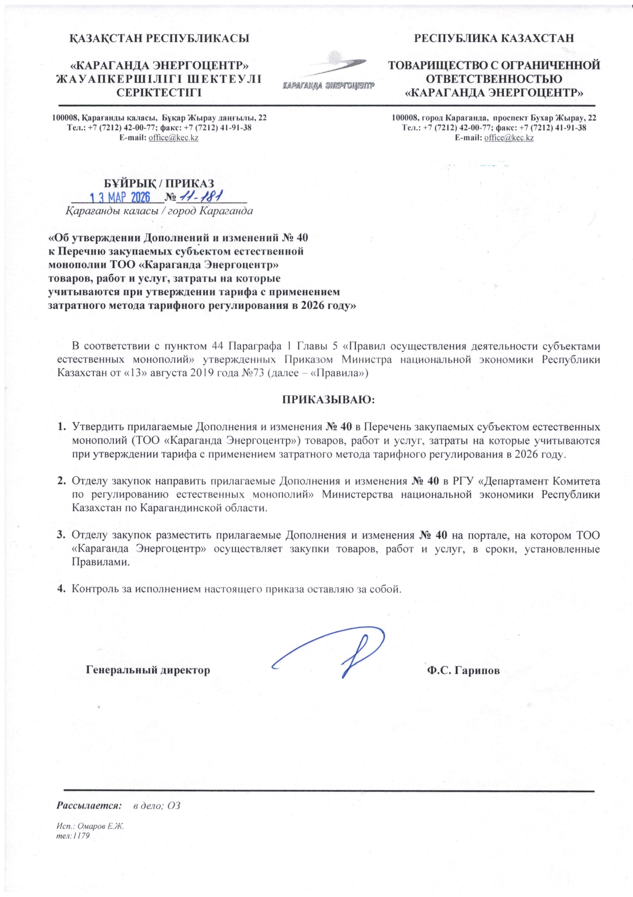 » ТОЛЫҚТЫРУ ЖӘНЕ ӨЗГЕРТУ №40
