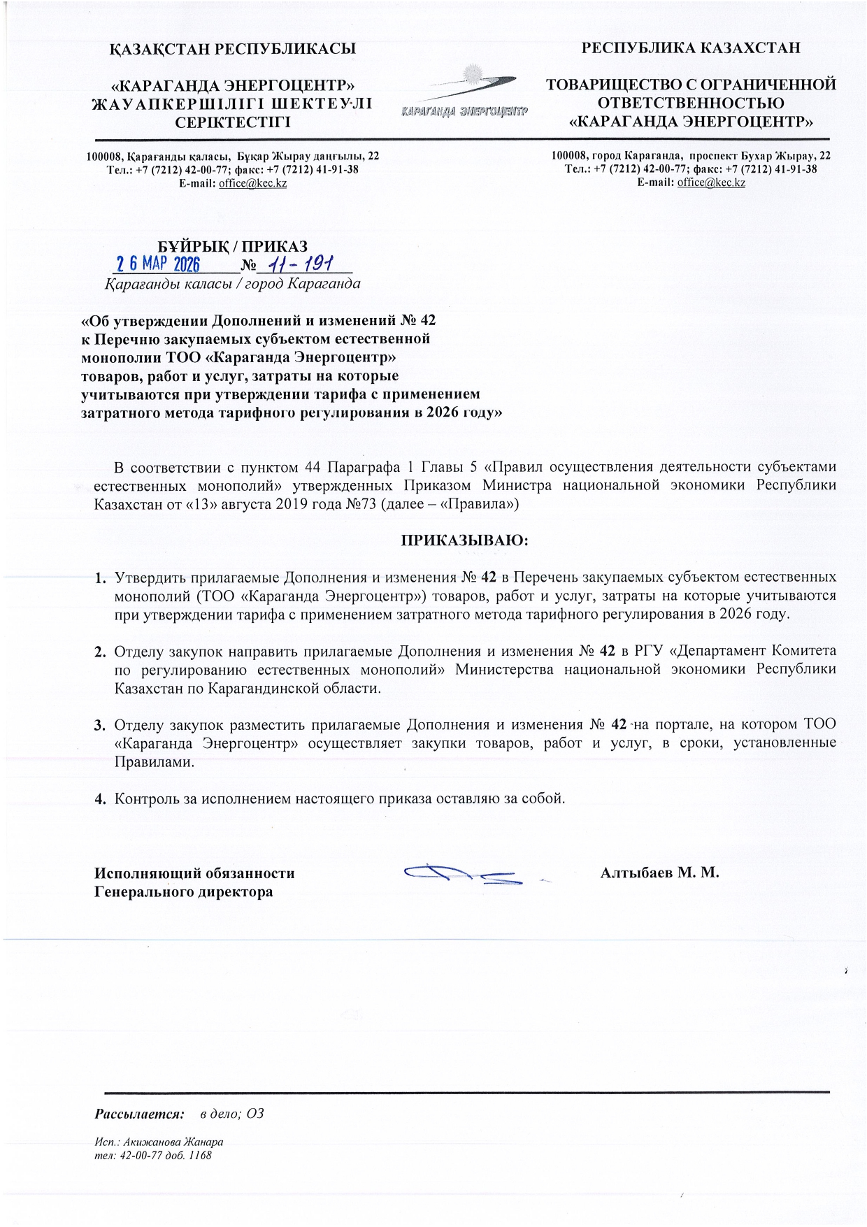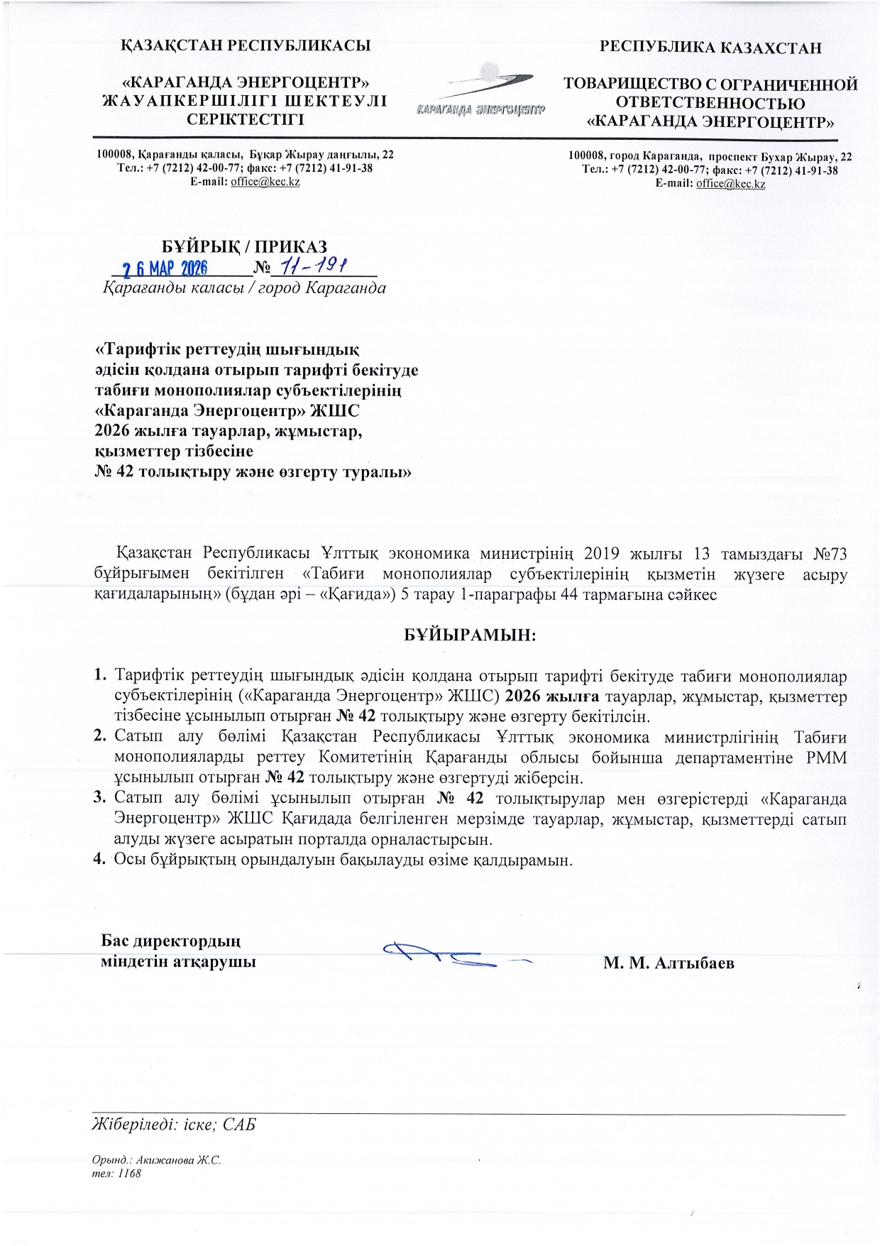 » ТОЛЫҚТЫРУ ЖӘНЕ ӨЗГЕРТУ №42