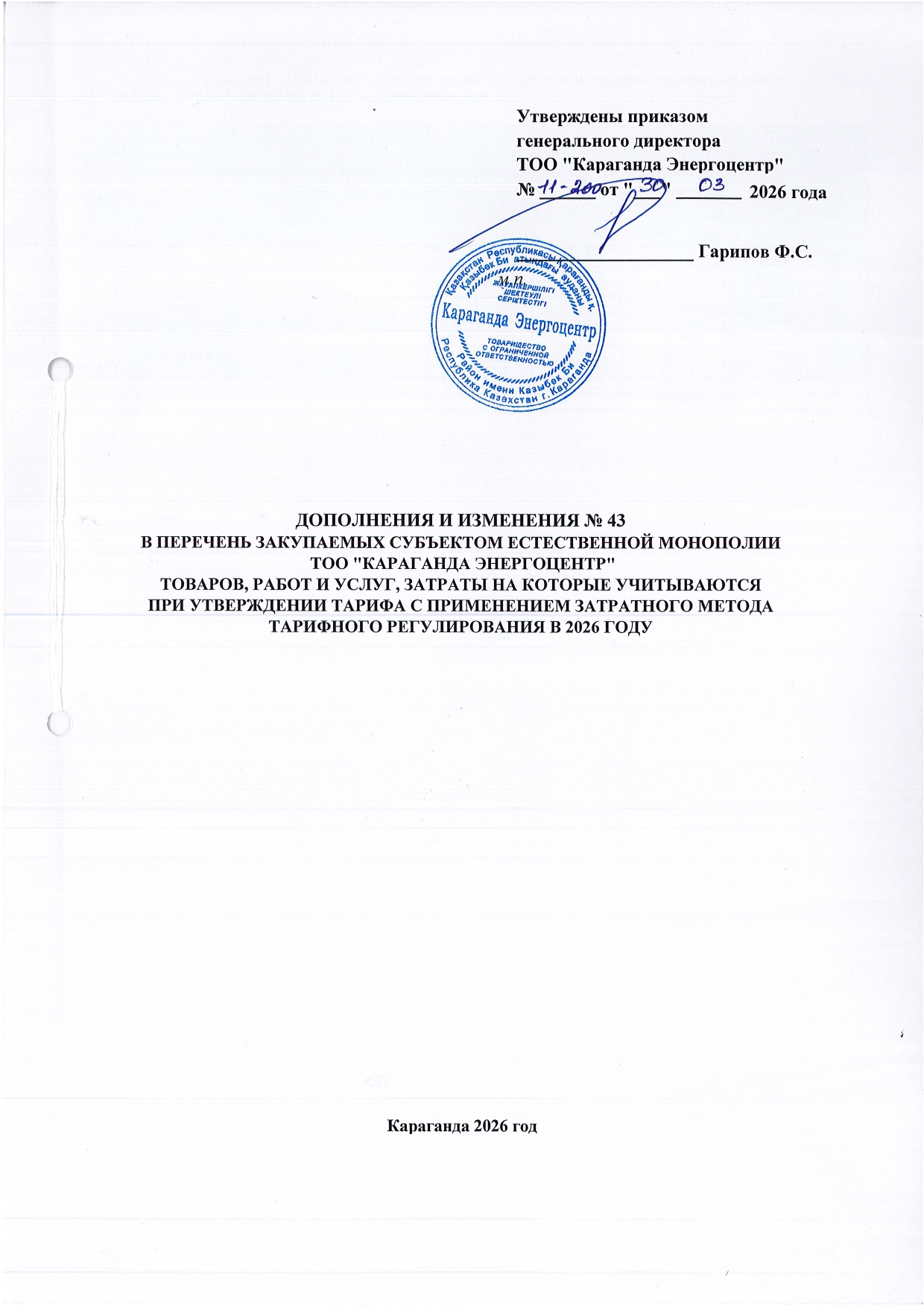 ТОЛЫҚТЫРУ ЖӘНЕ ӨЗГЕРТУ №43