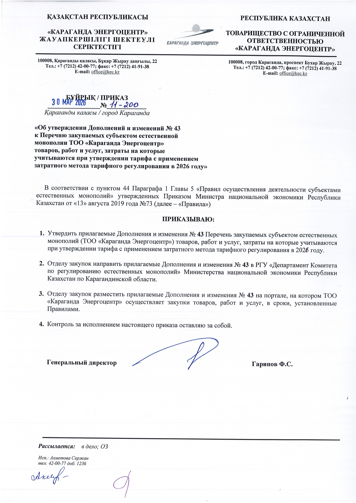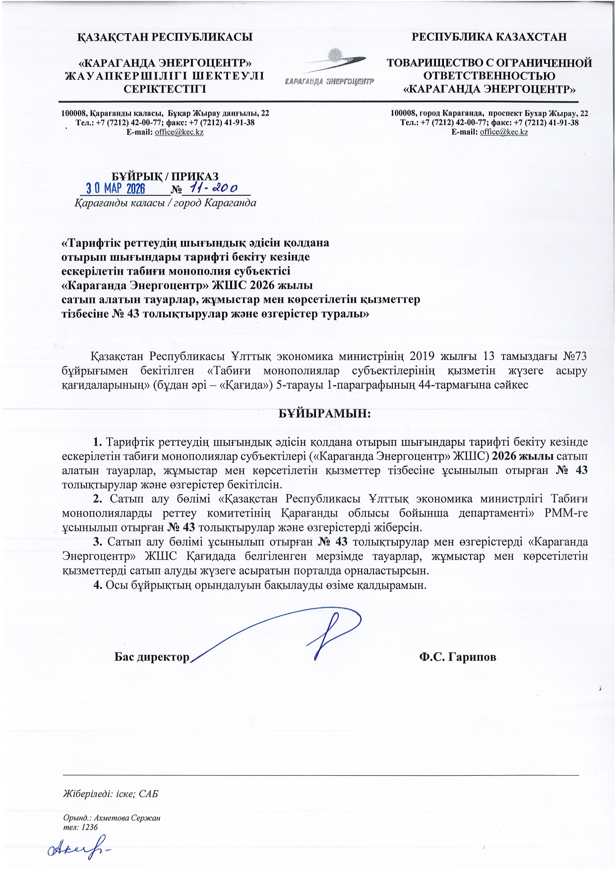» ТОЛЫҚТЫРУ ЖӘНЕ ӨЗГЕРТУ №43