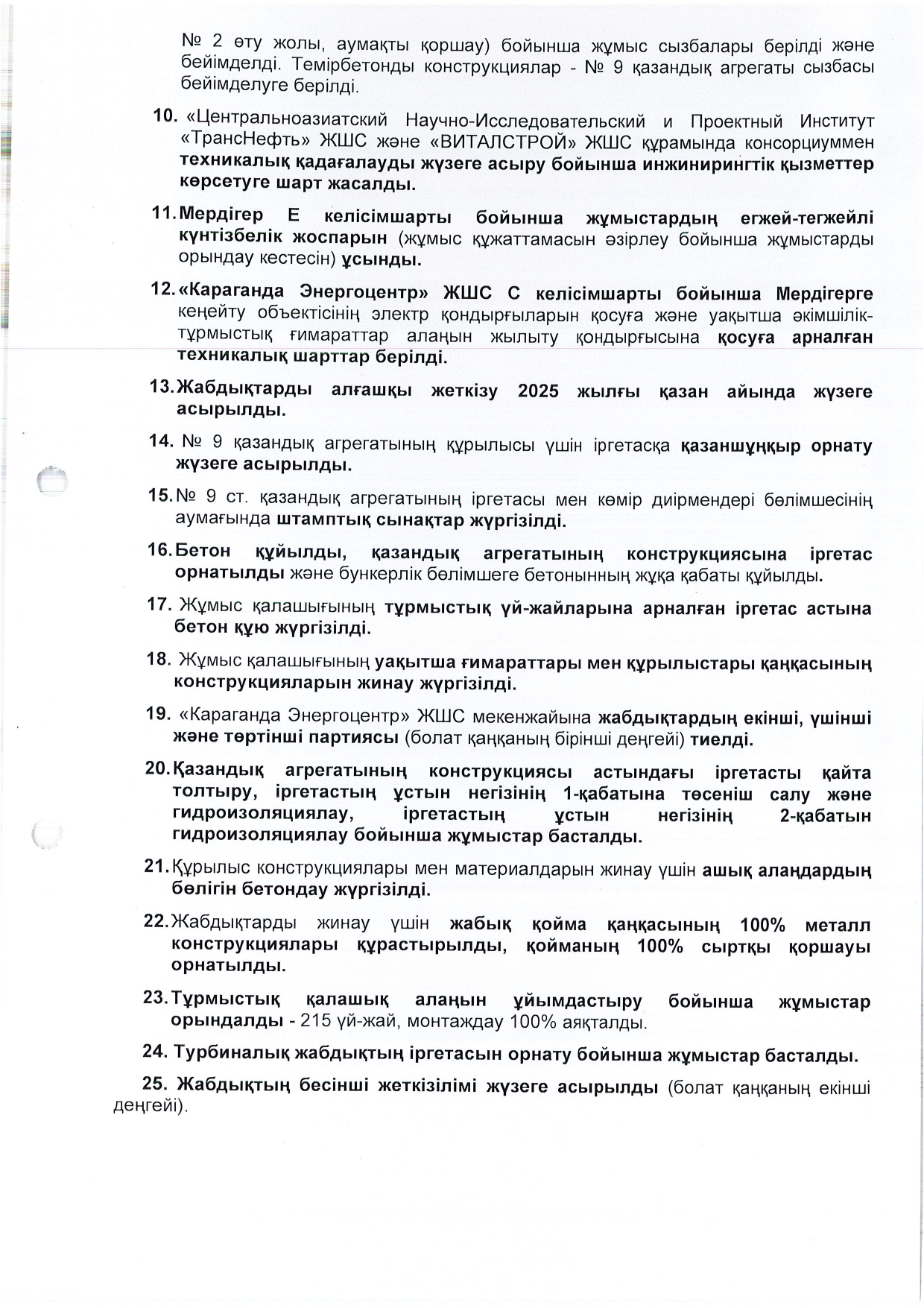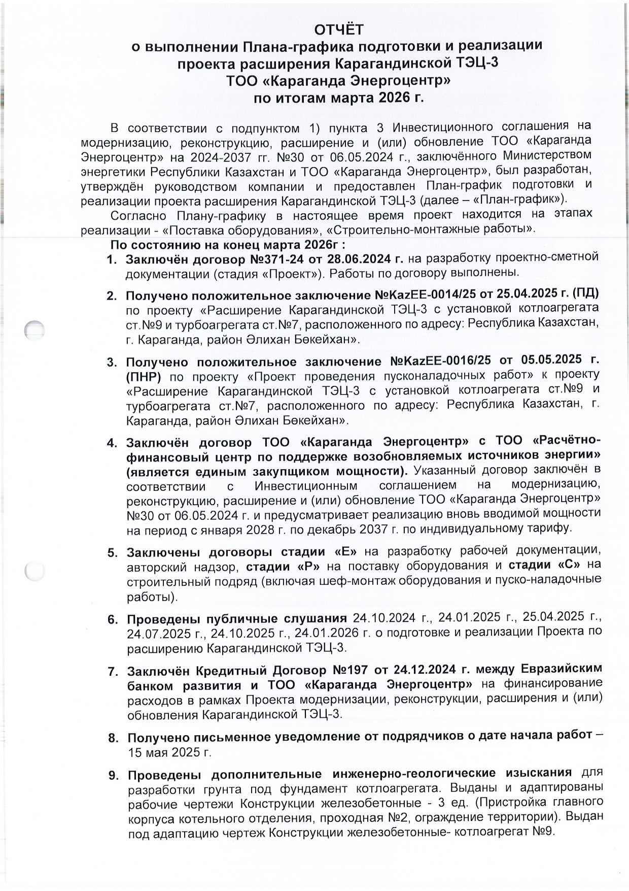 КЕҢЕЙТУ ЖОБАСЫНЫҢ ЖОСПАР-КЕСТЕСІН ОРЫНДАУ ТУРАЛЫ ЕСЕБІ