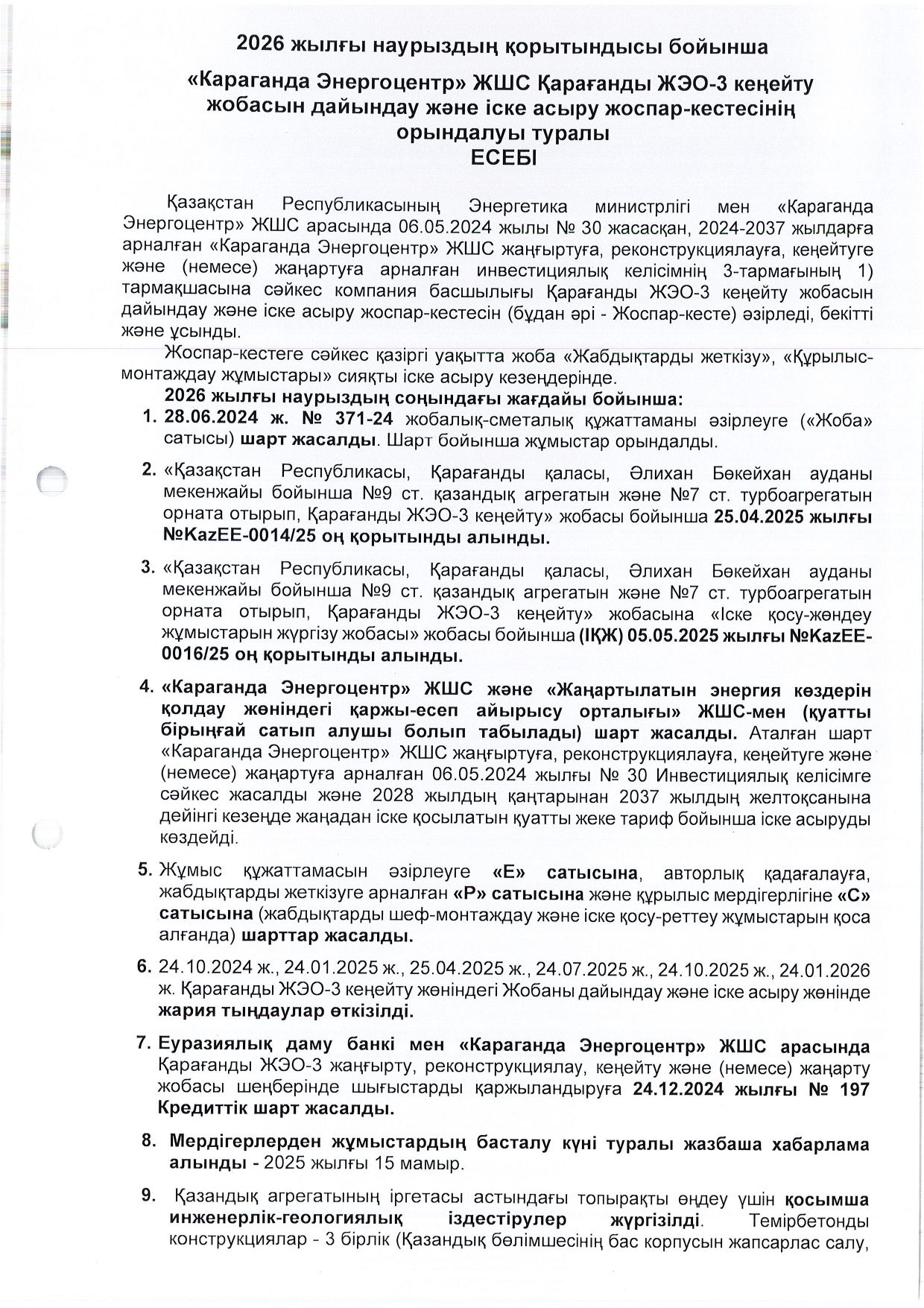 » КЕҢЕЙТУ ЖОБАСЫНЫҢ ЖОСПАР-КЕСТЕСІН ОРЫНДАУ ТУРАЛЫ ЕСЕБІ