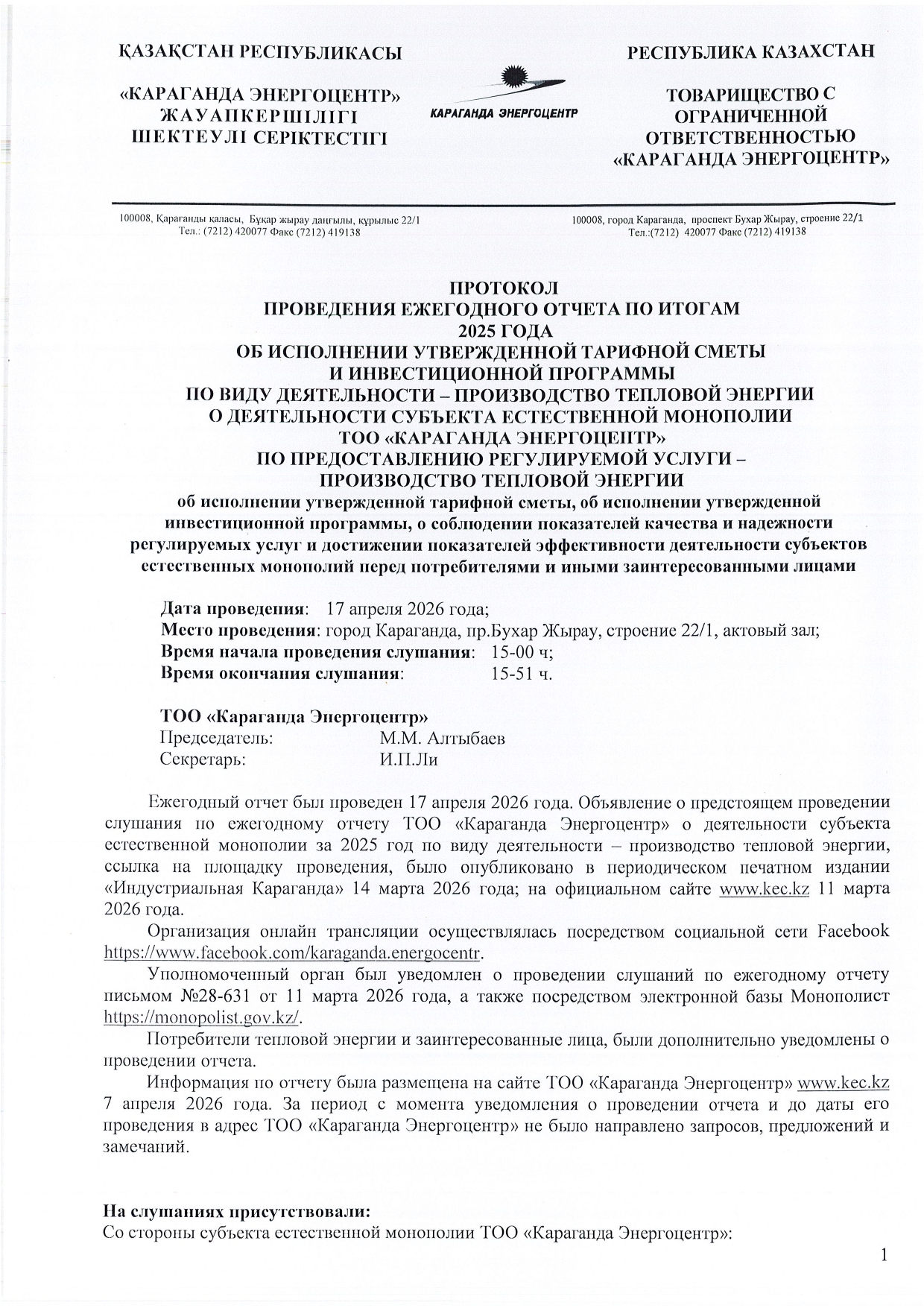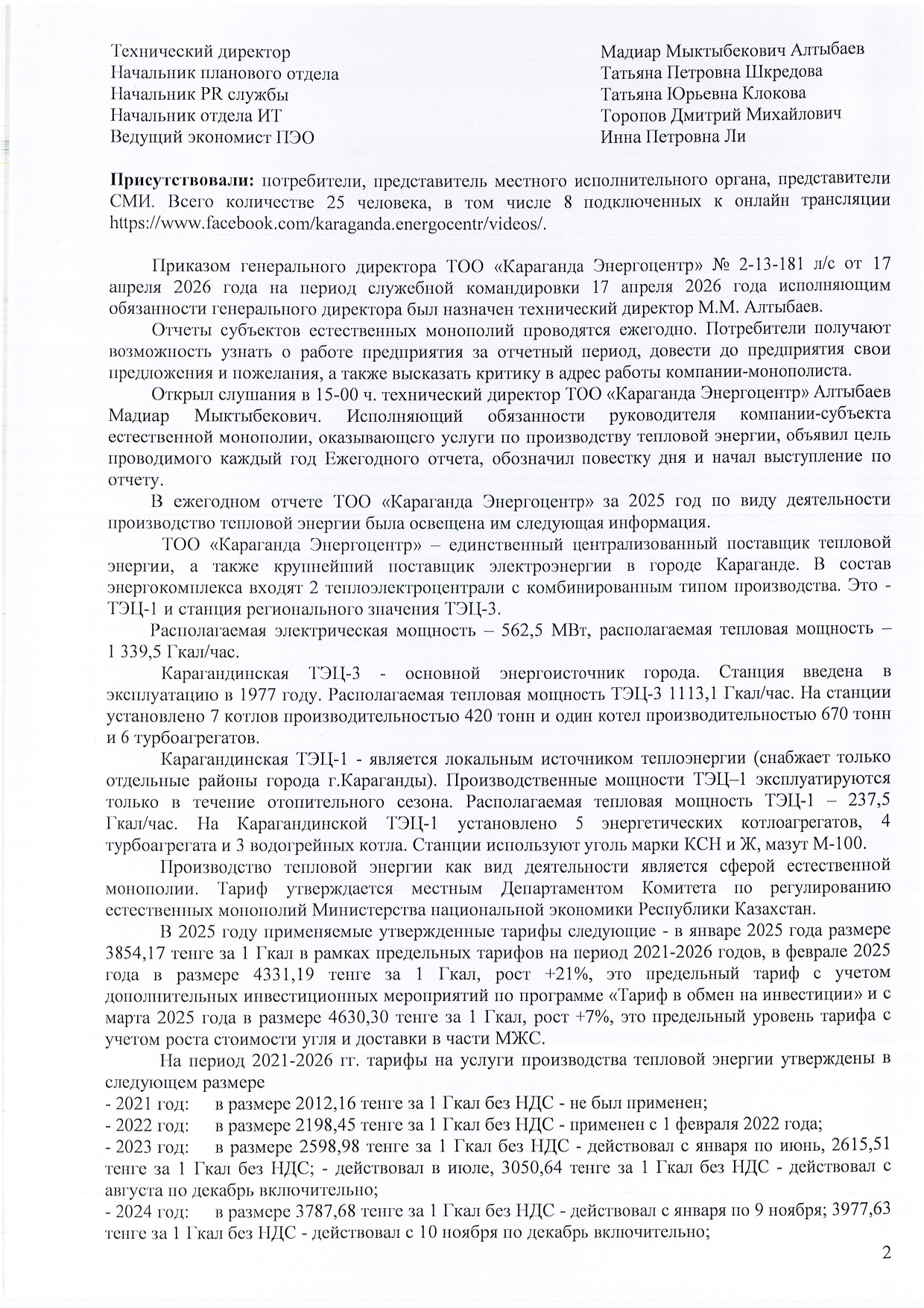 » 2025 ЖЫЛДЫҢ ҚОРЫТЫНДЫСЫ БОЙЫНША ТҰТЫНУШЫЛАР АЛДЫНДА ЕСЕП ӨТТІ